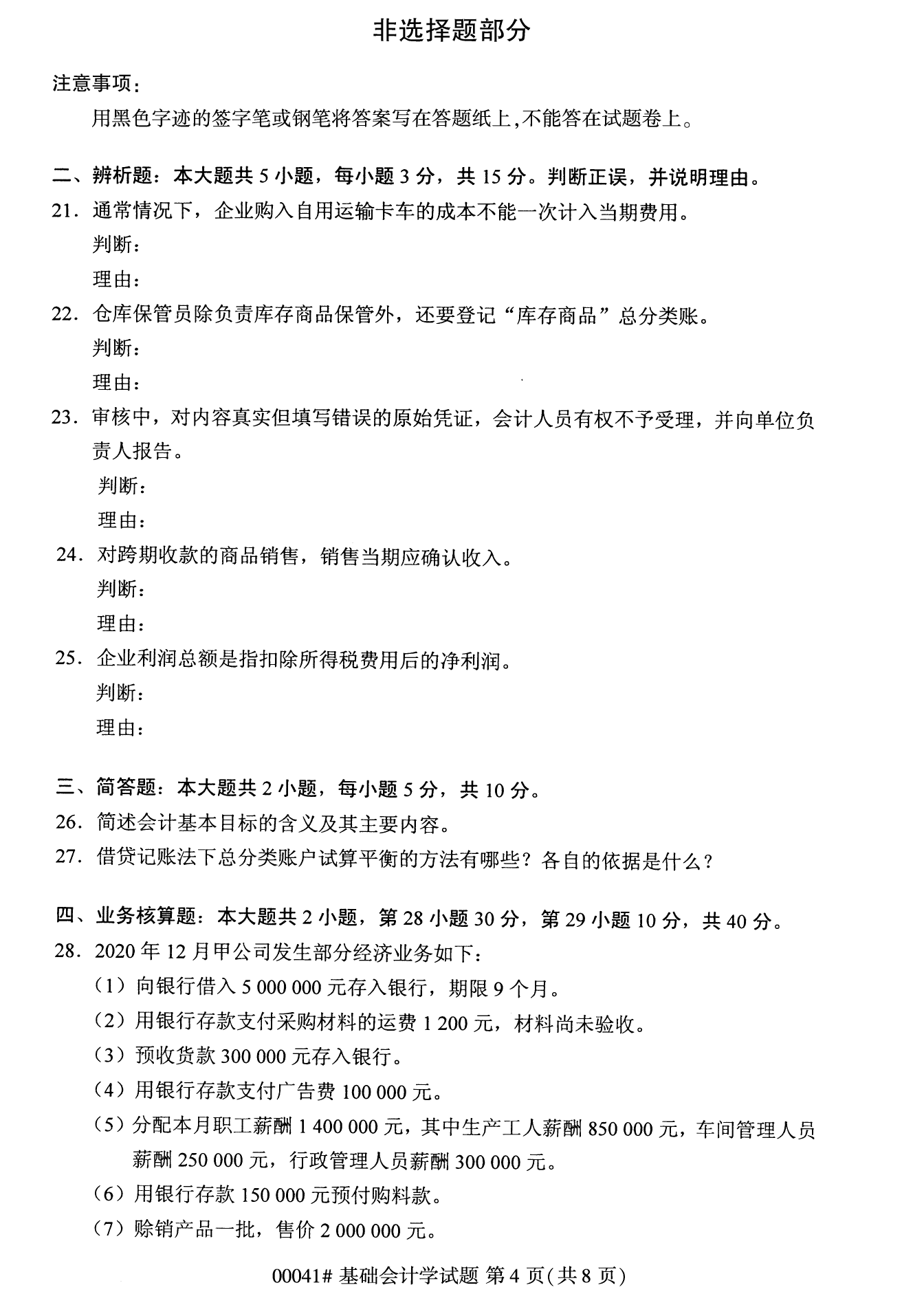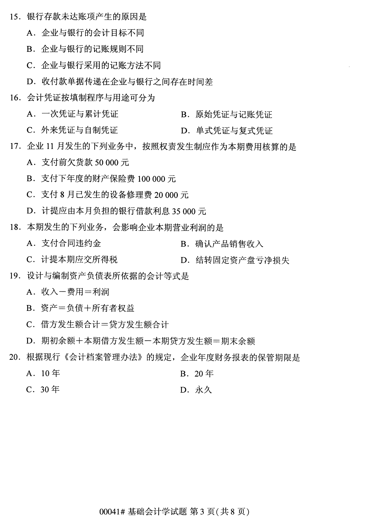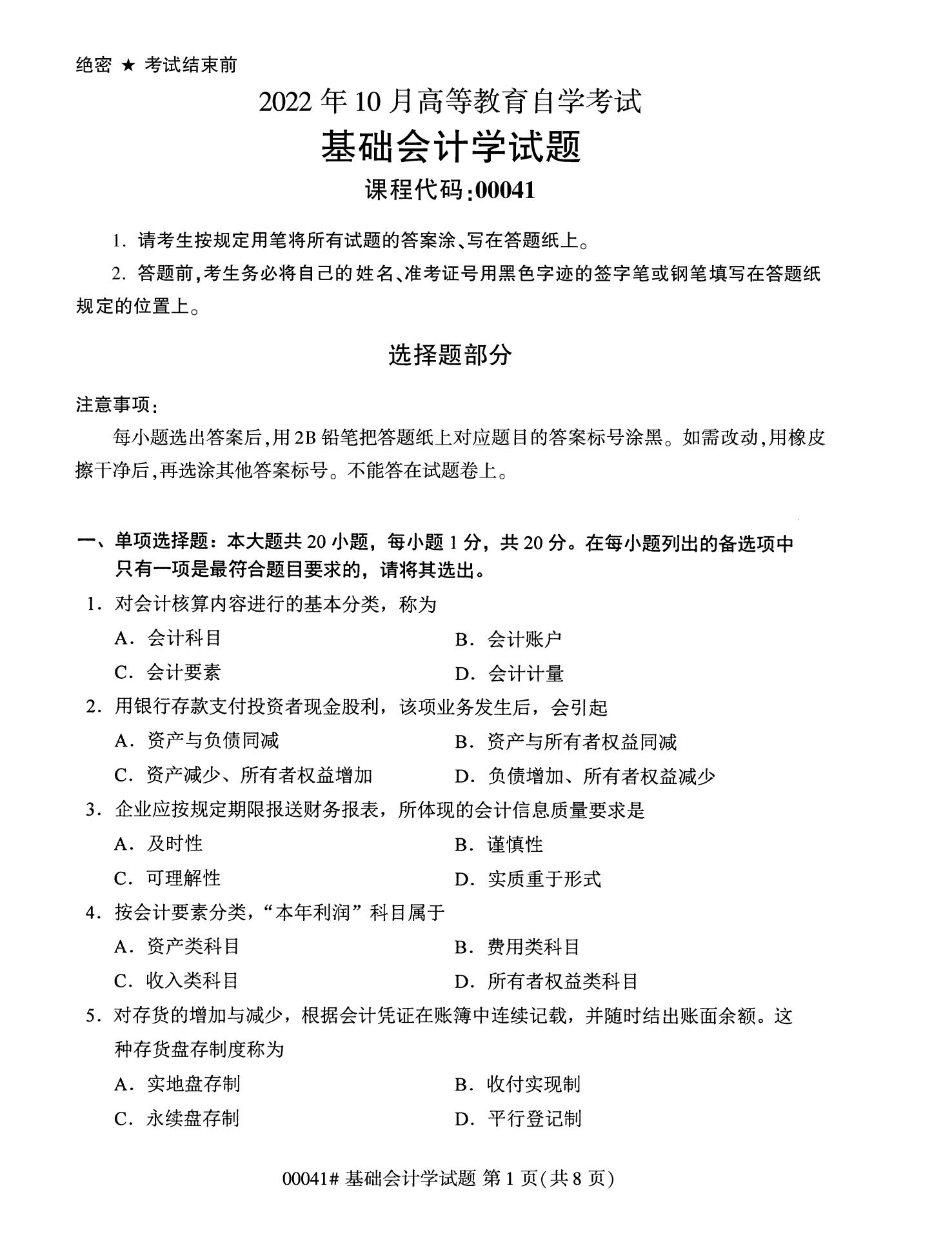2022年10月高等教育自學(xué)考試基礎(chǔ)會(huì)計(jì)學(xué)00041試題