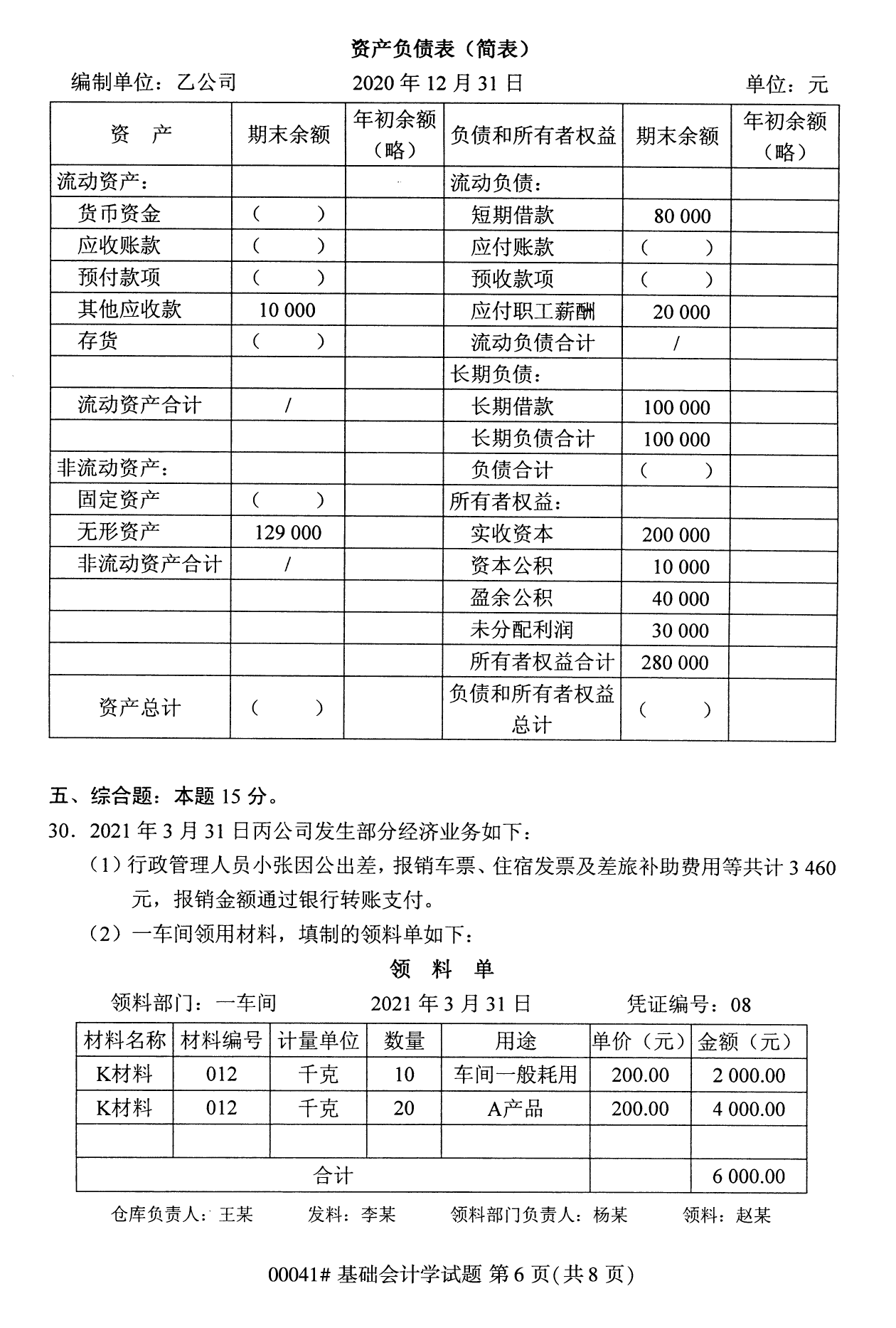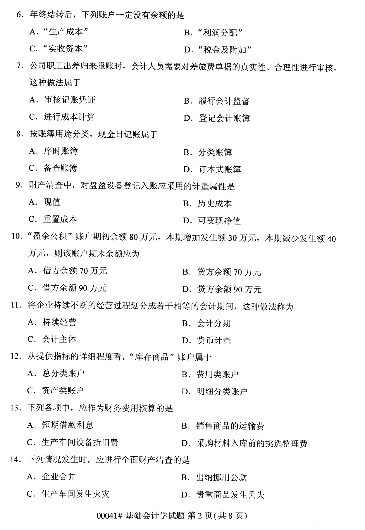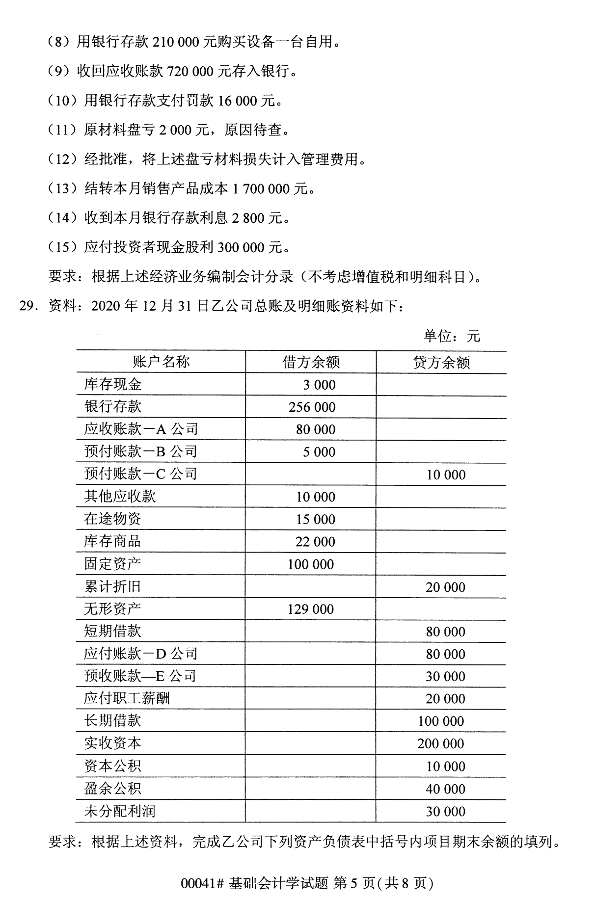 2022年10月高等教育自學(xué)考試基礎(chǔ)會(huì)計(jì)學(xué)00041試題