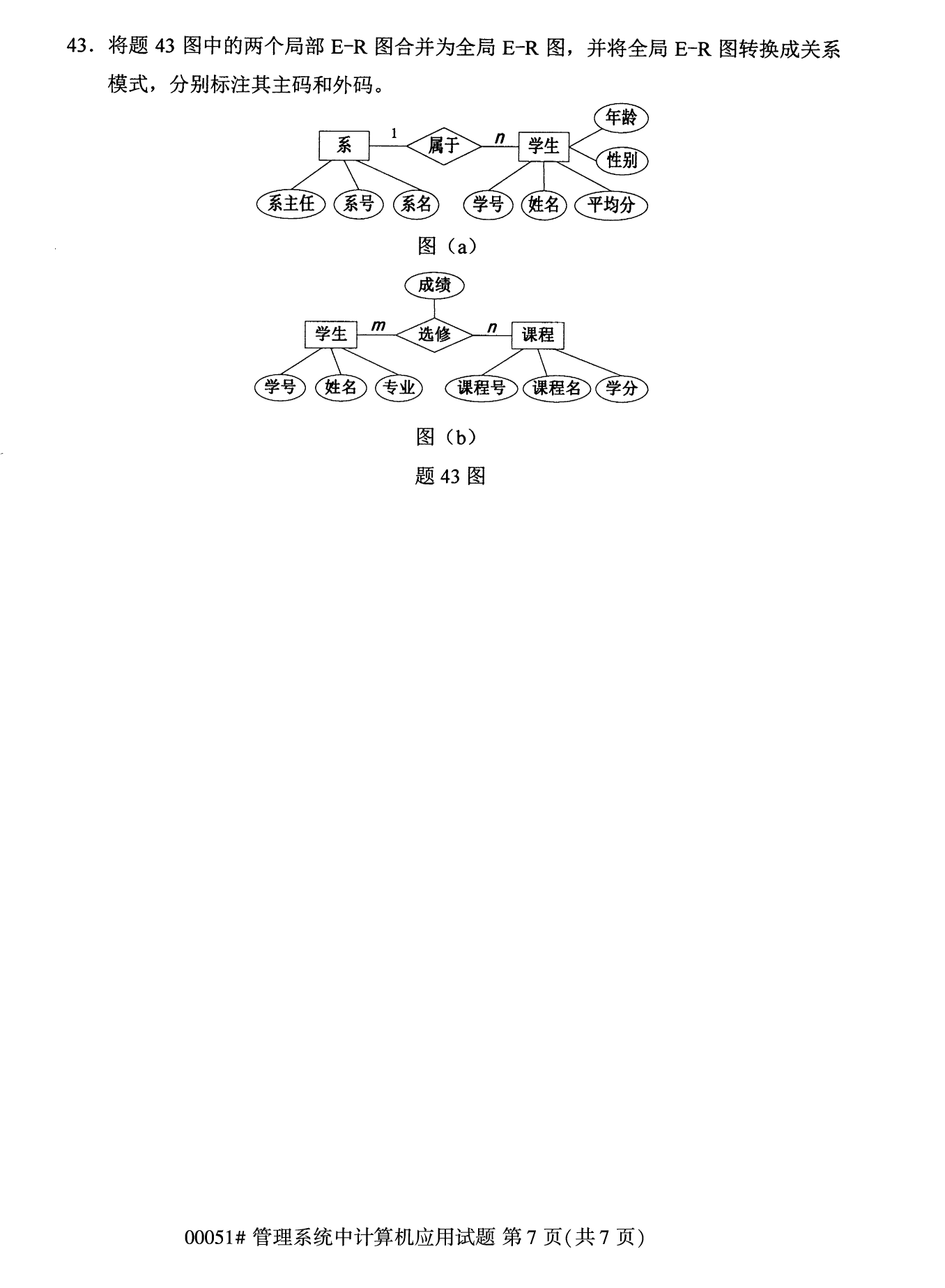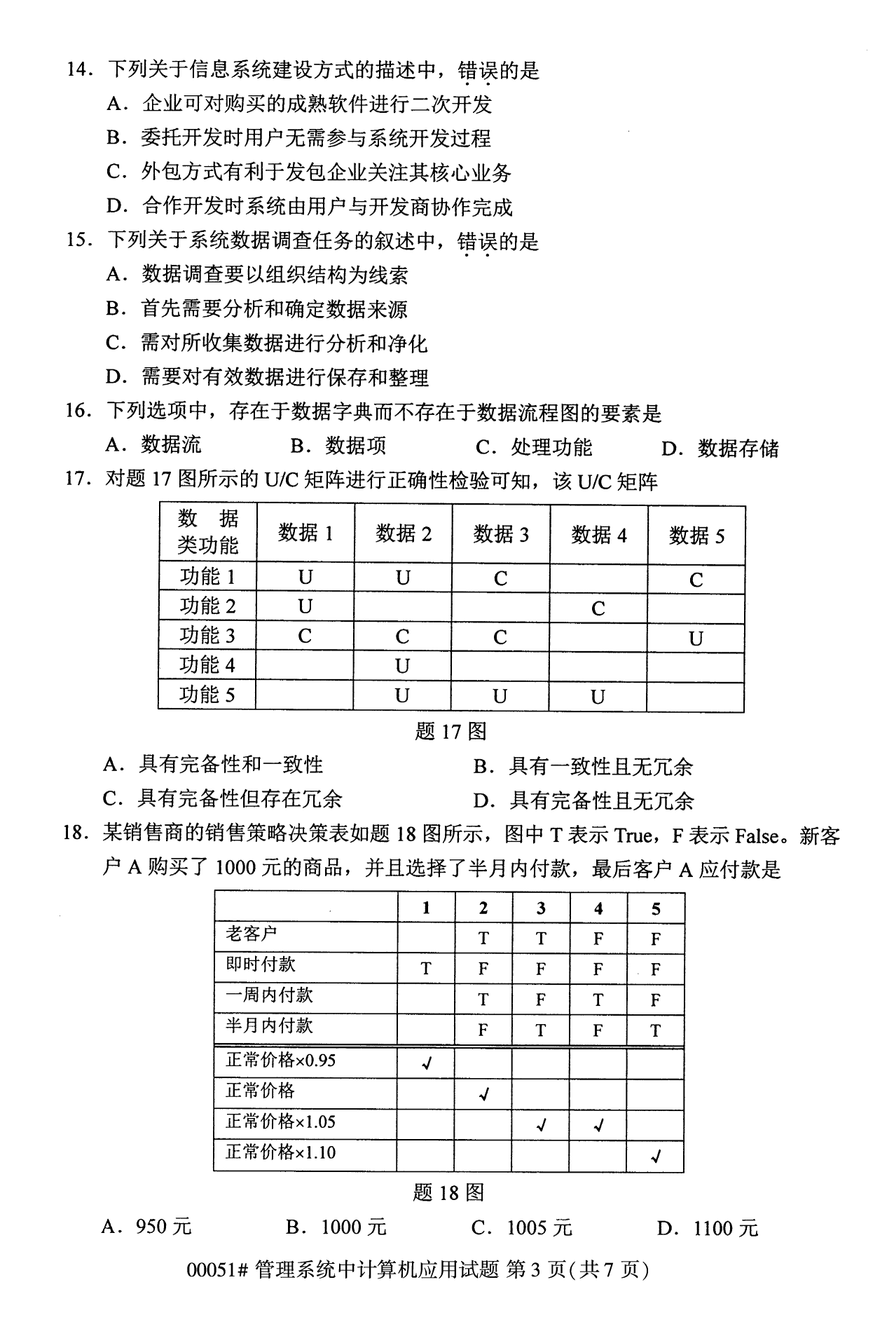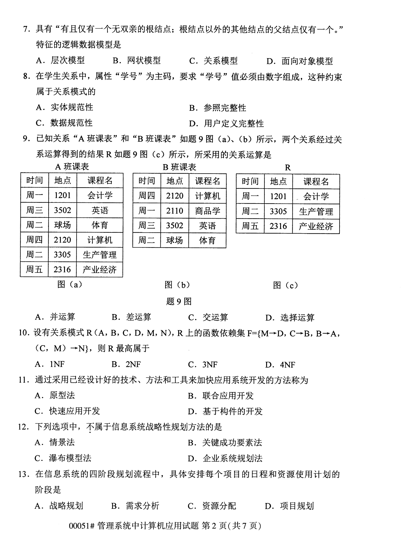 2022年10月高等教育自學考試管理系統中計算機應用00051試題
