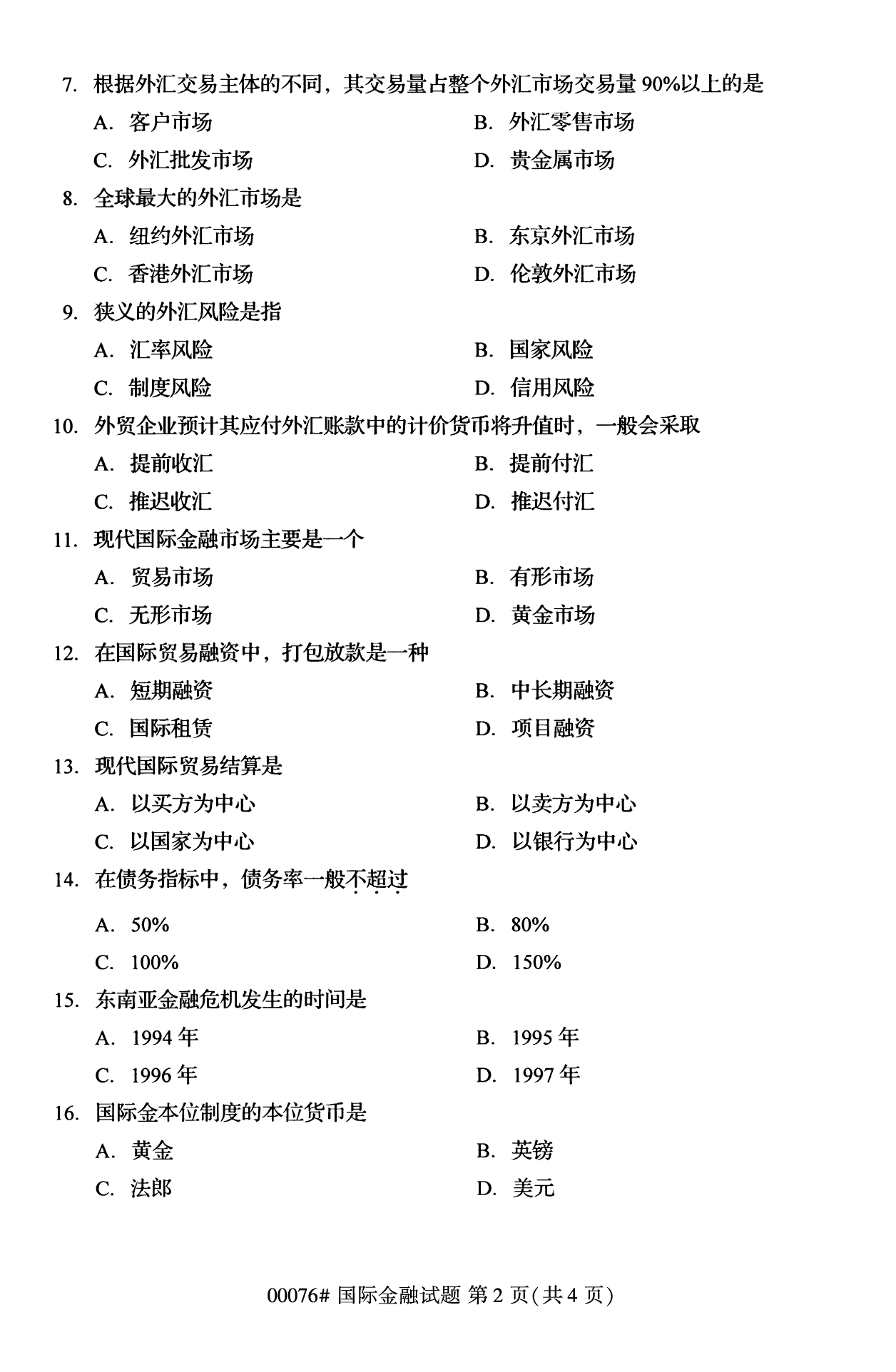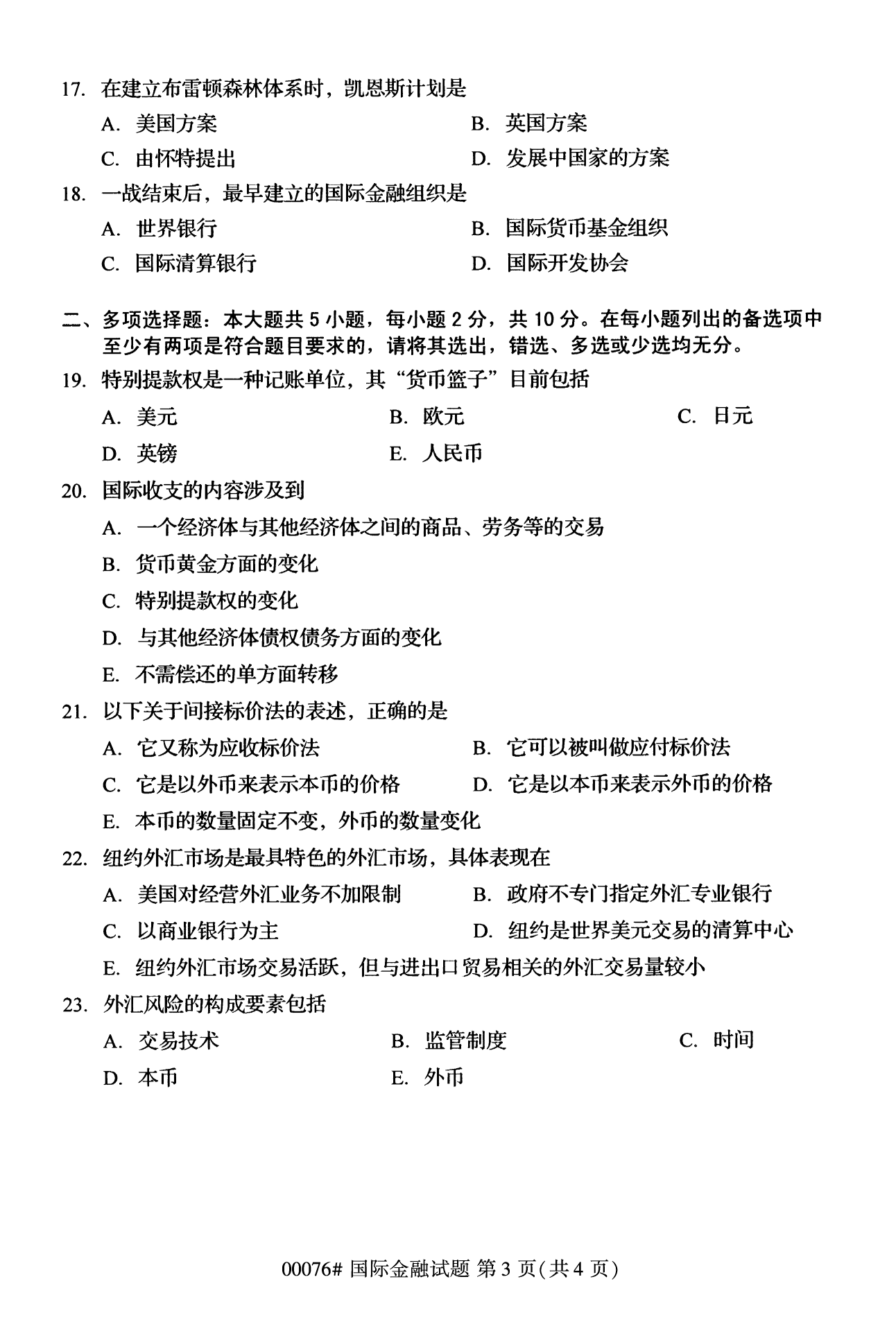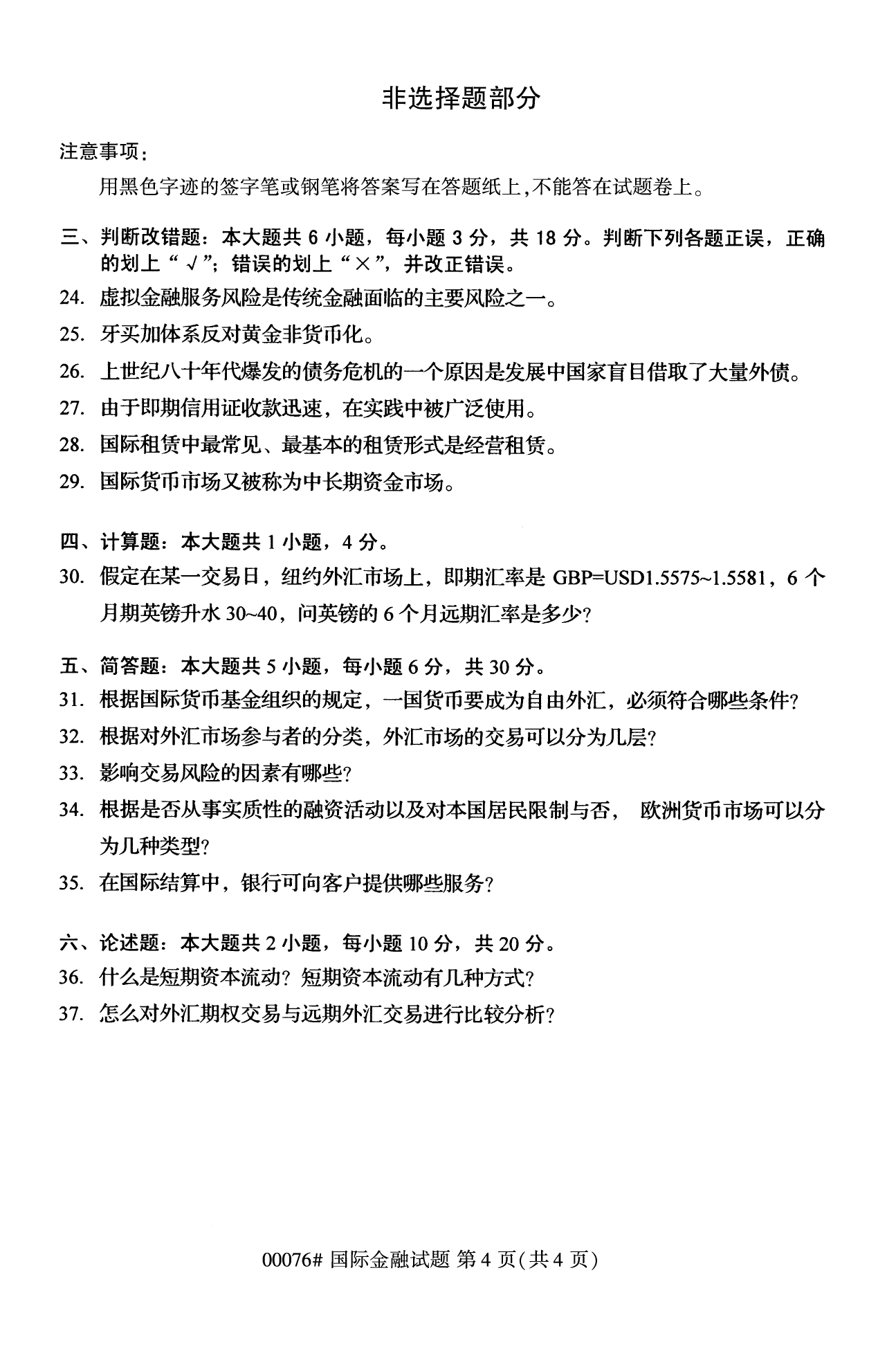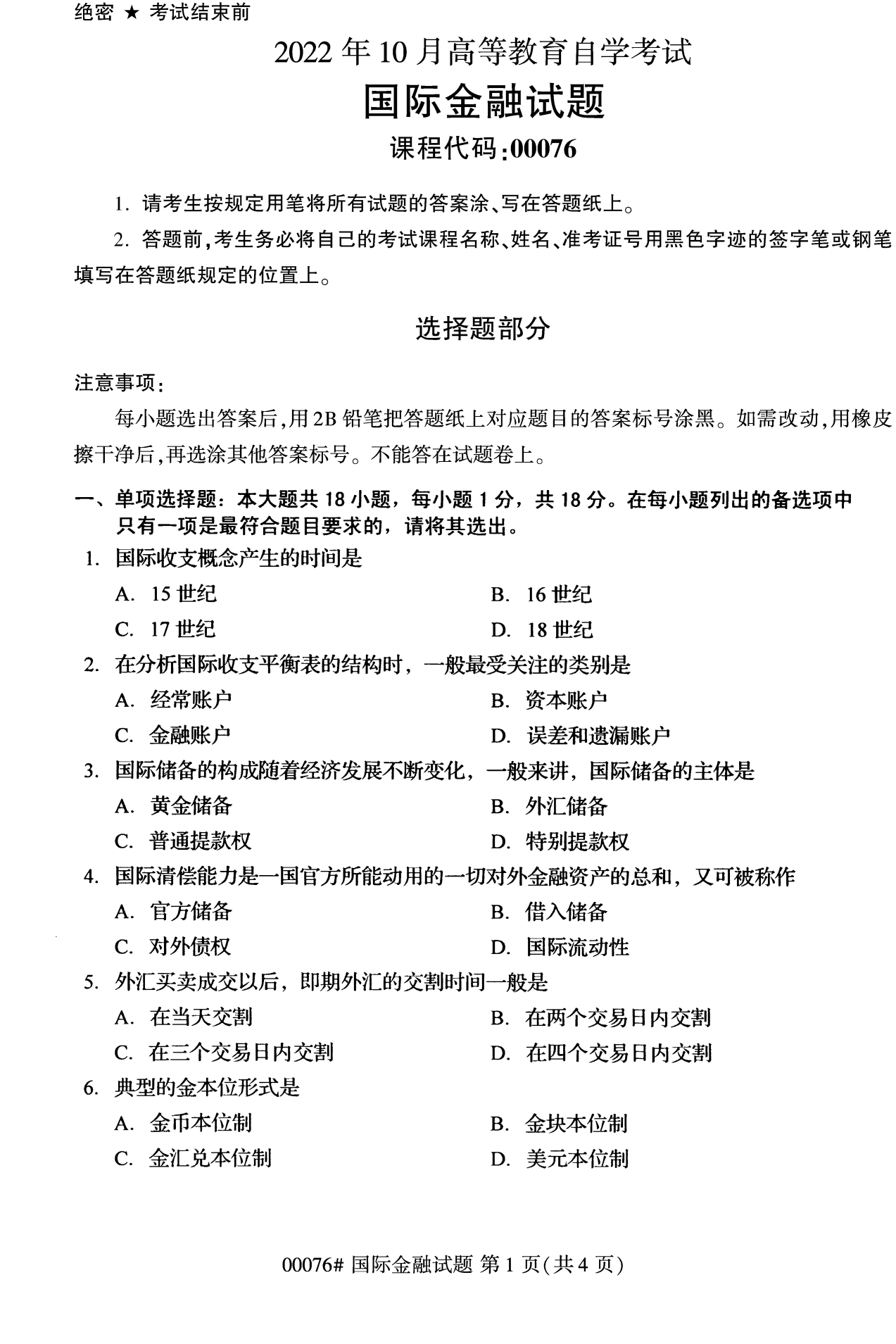 2022年10月高等教育自學(xué)考試國(guó)際金融00076試題