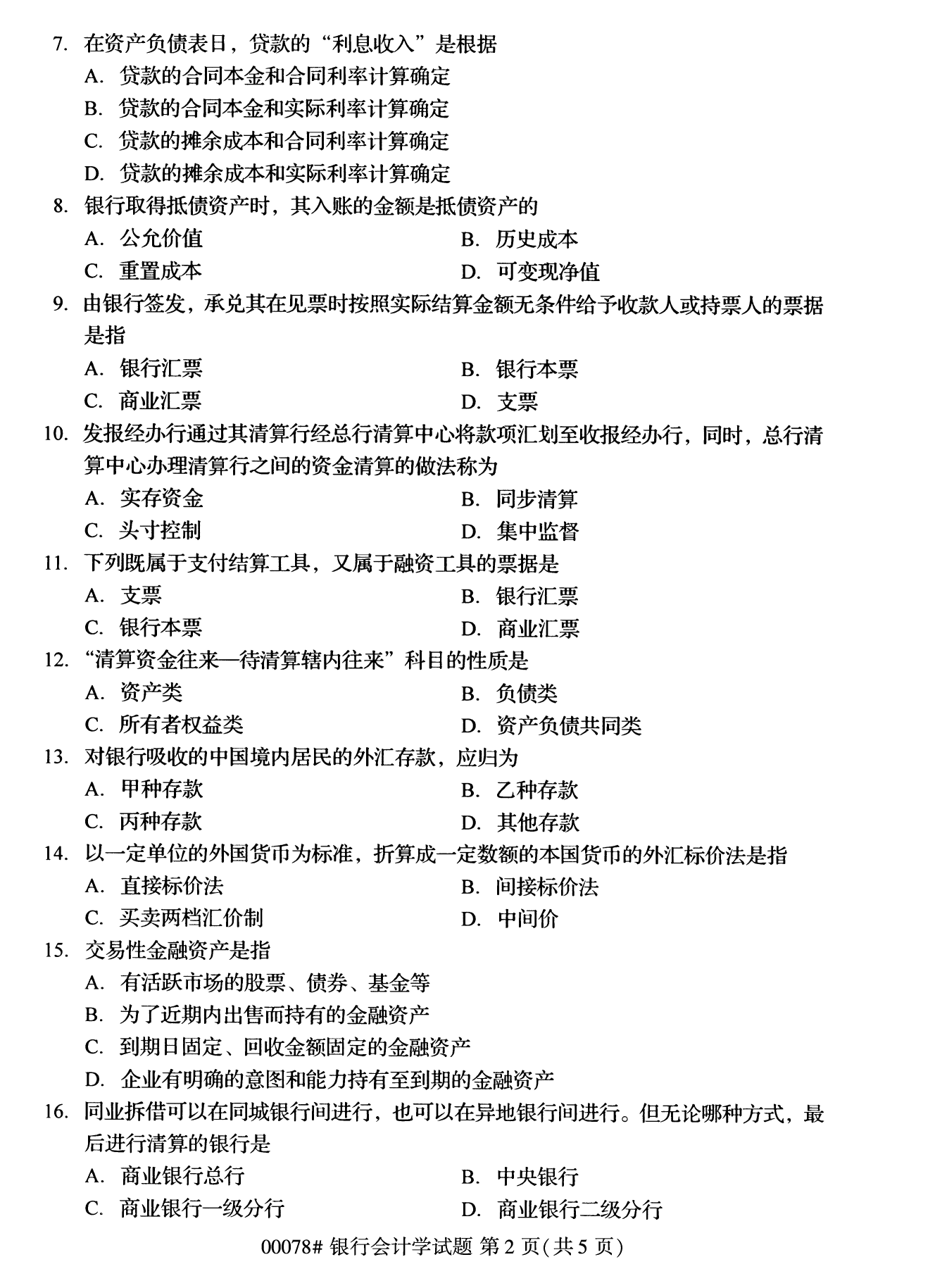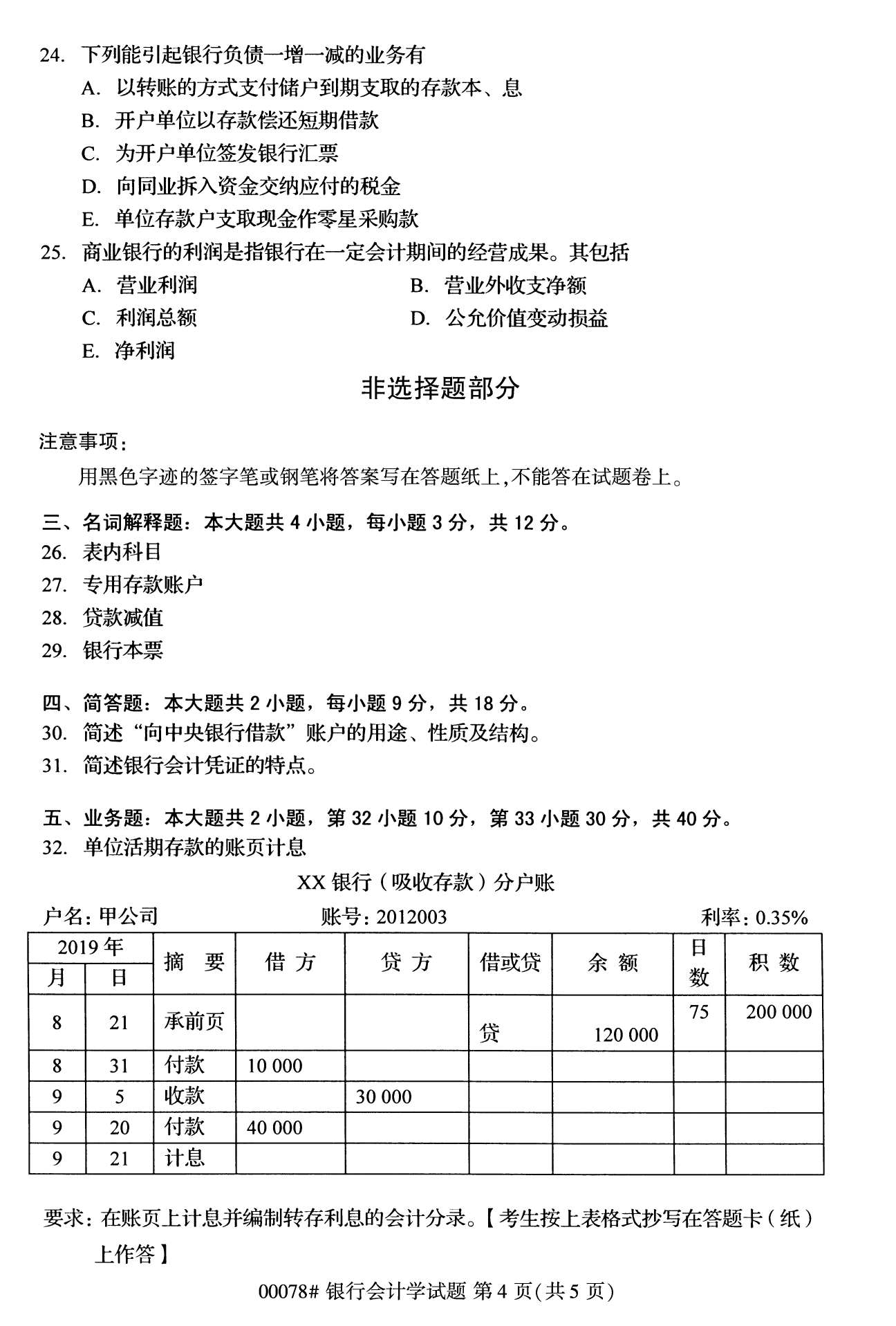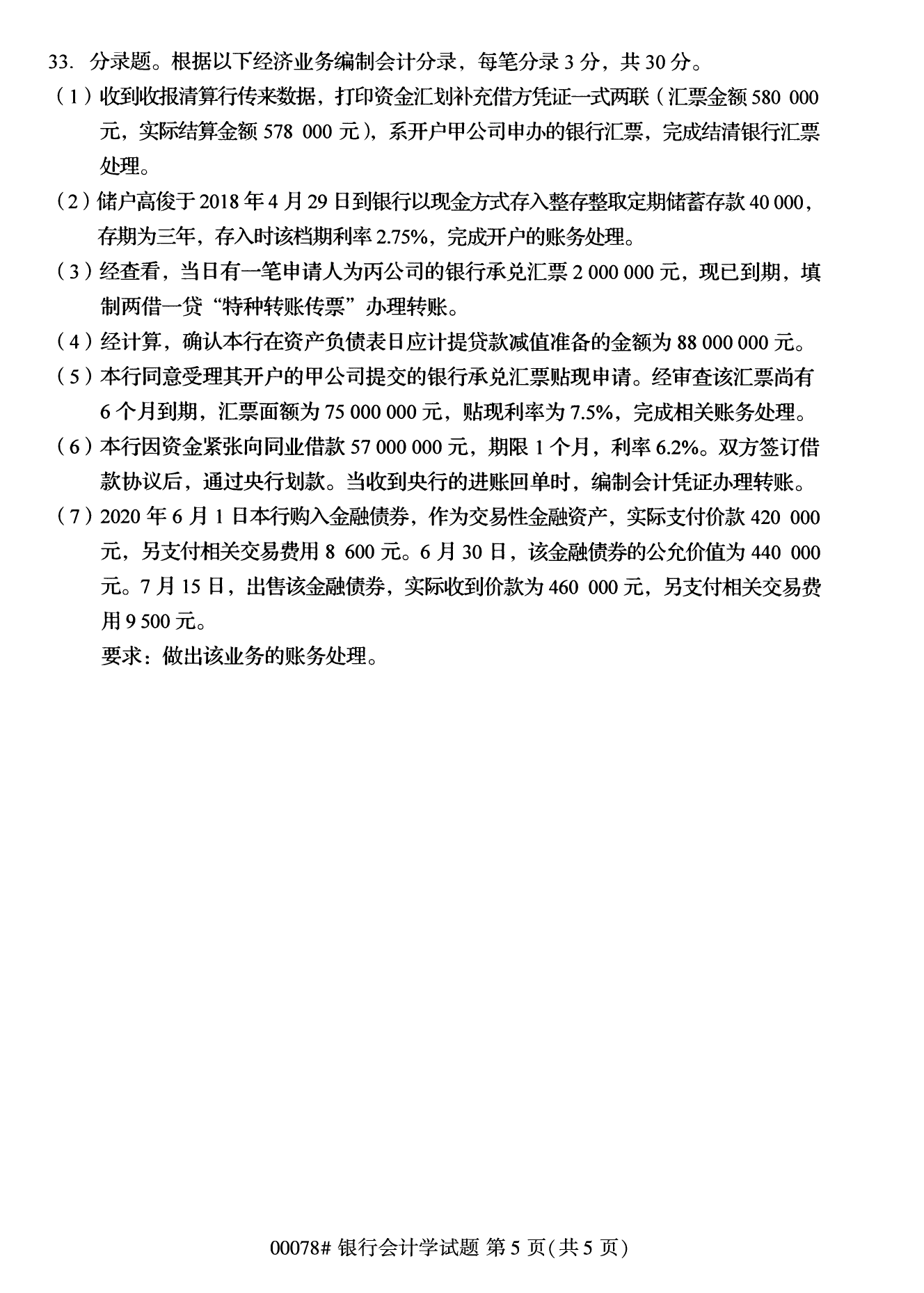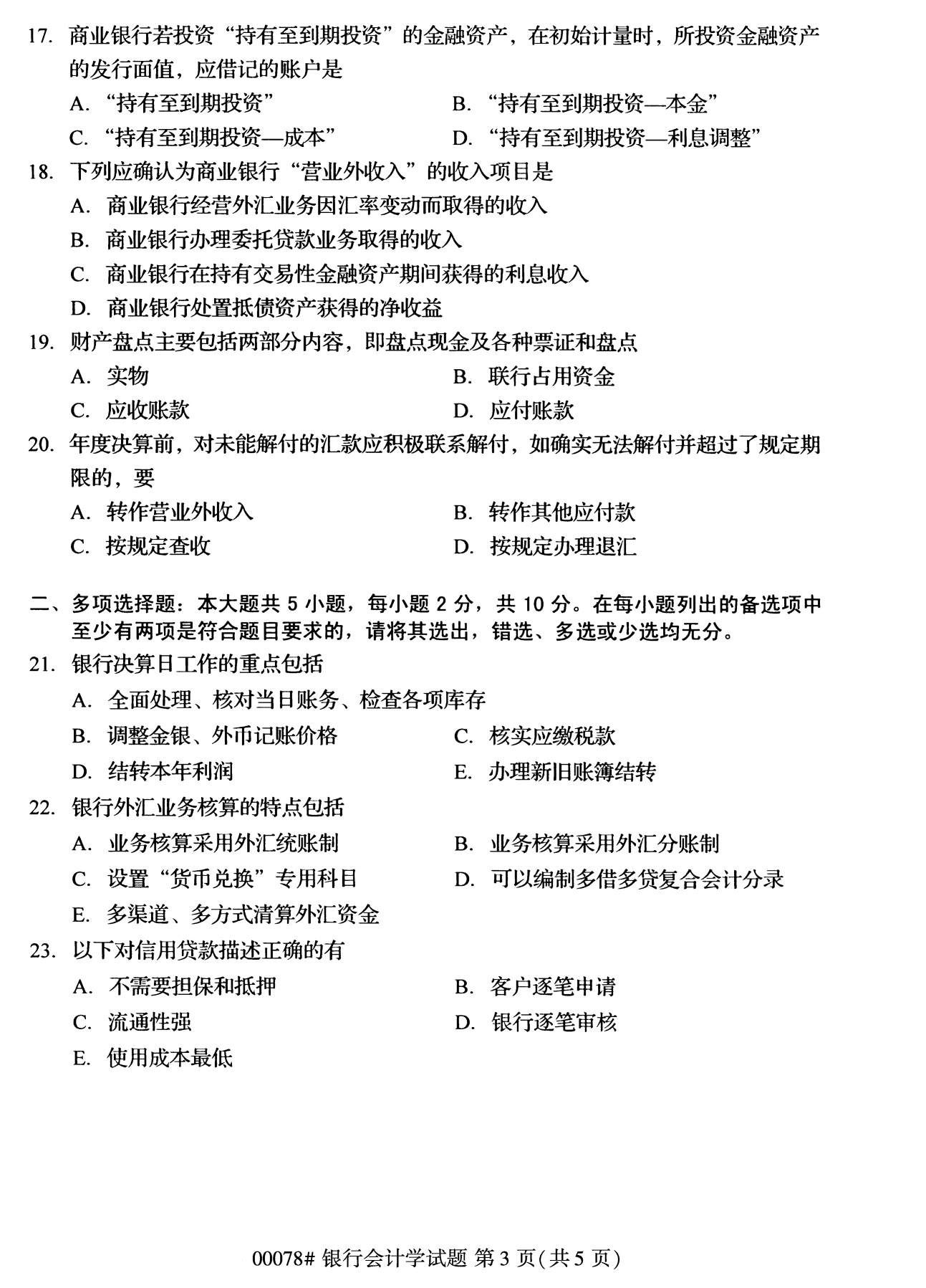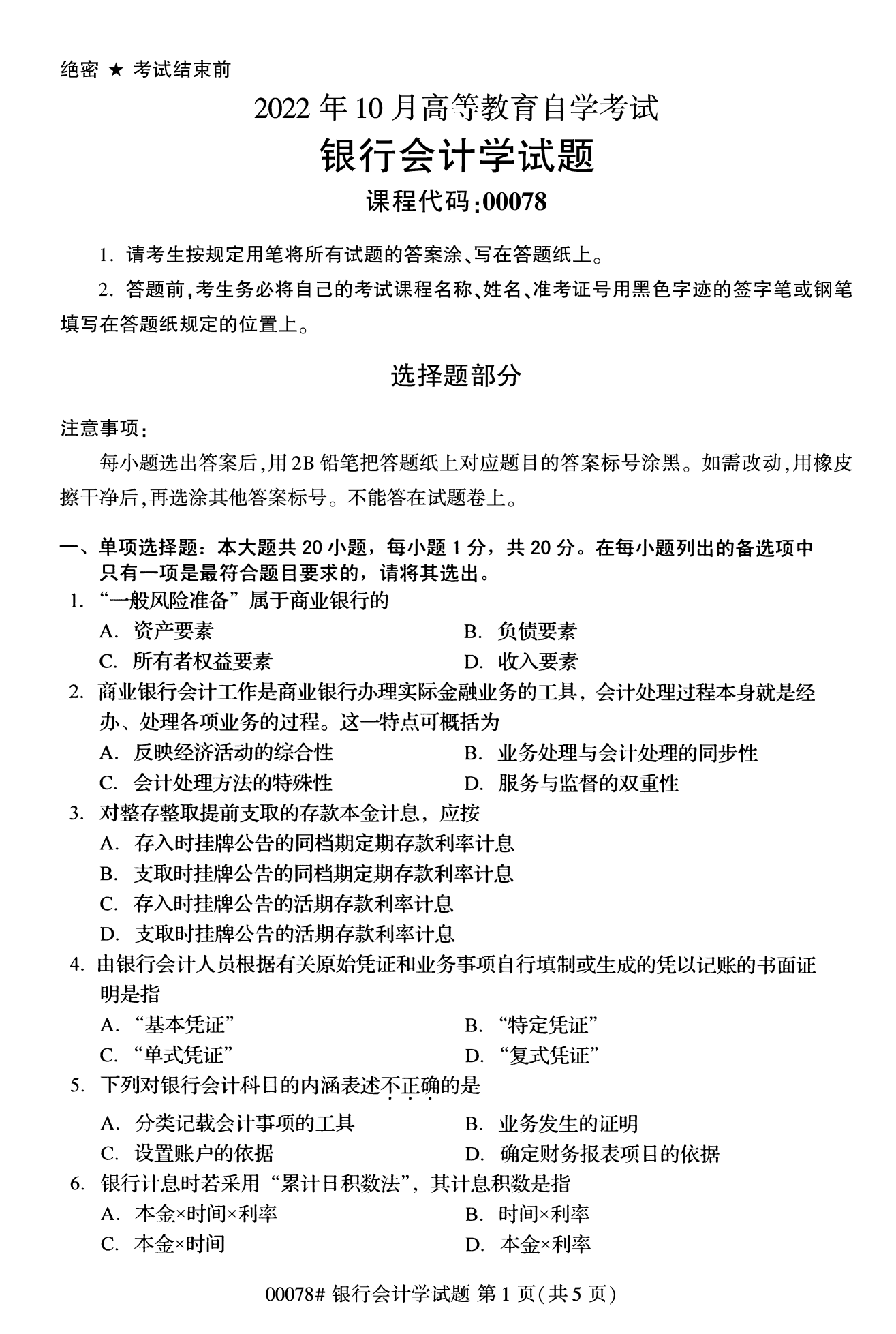 2022年10月高等教育自學考試銀行會計學00078試題