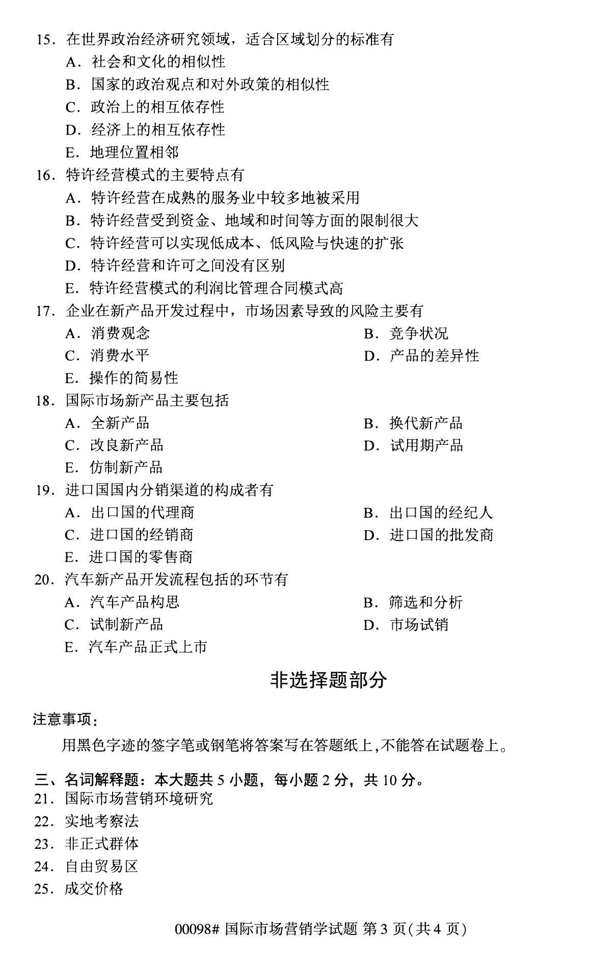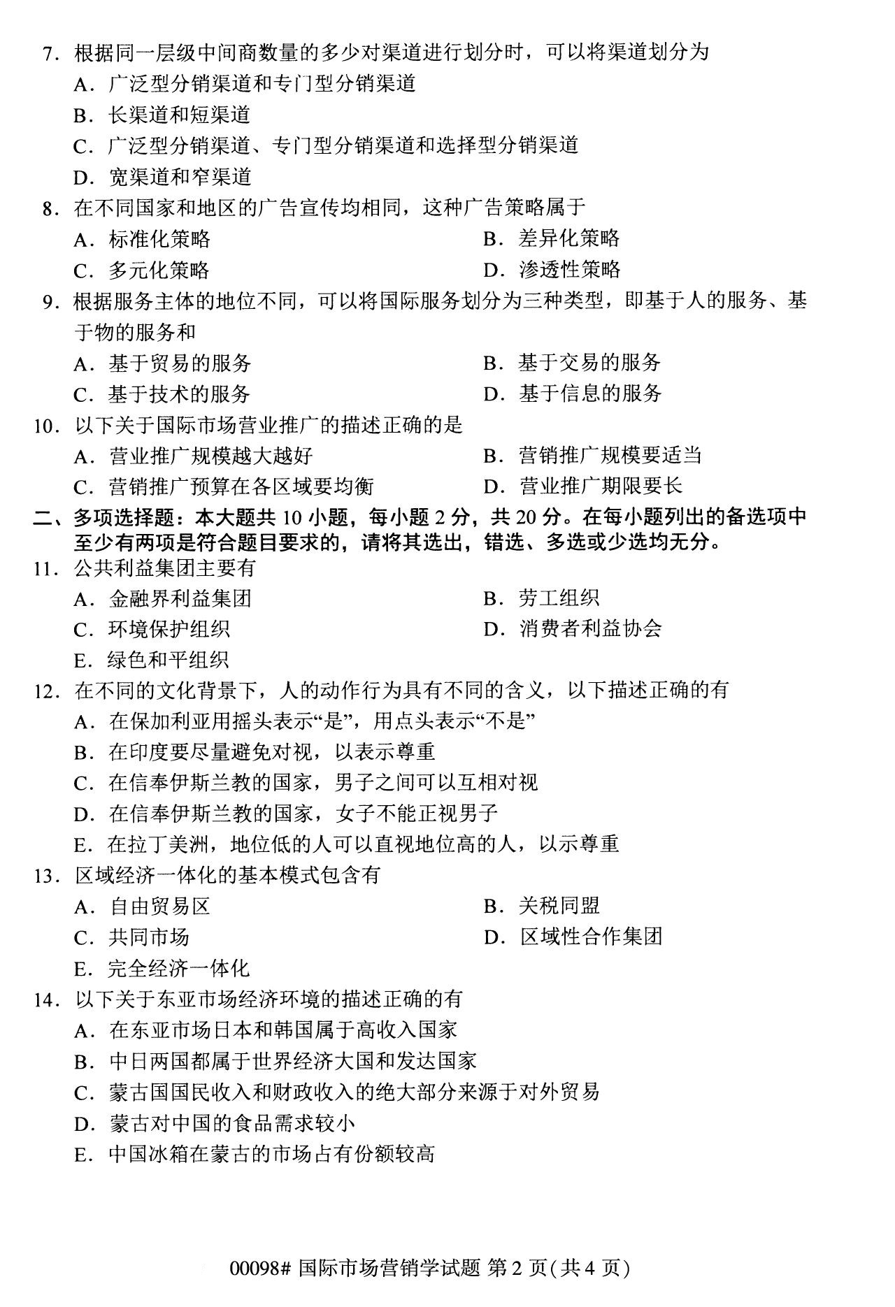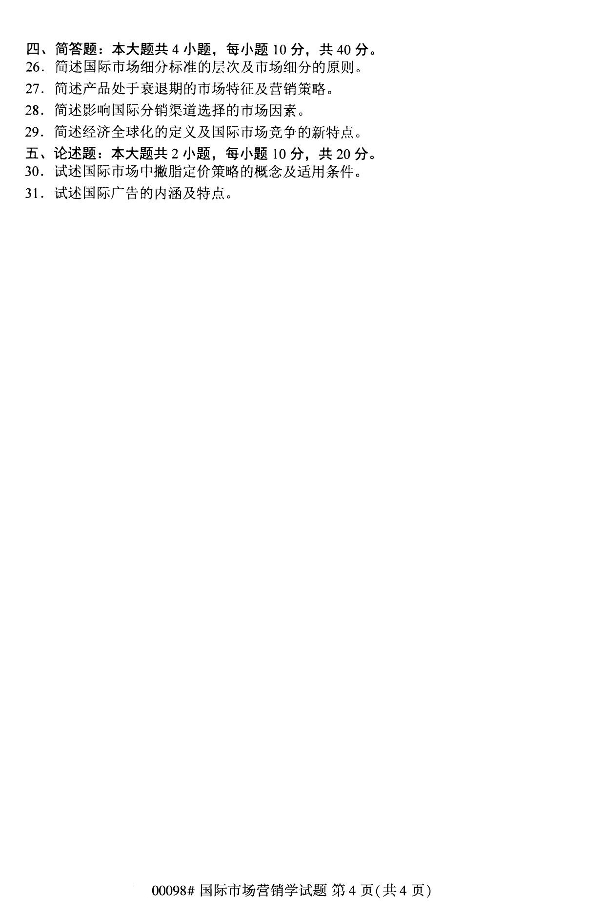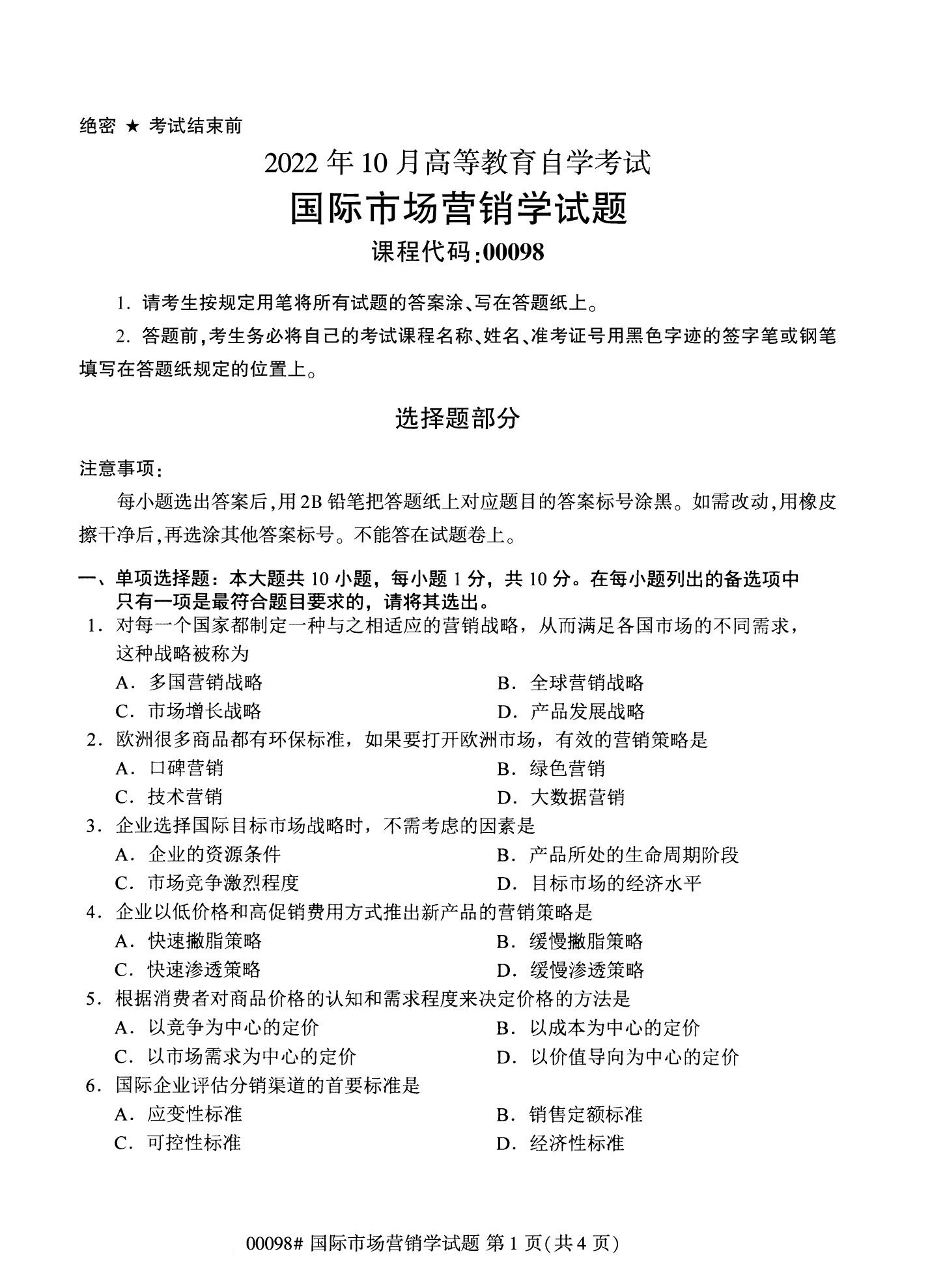 2022年10月高等教育自學考試國際市場營銷學00098試題