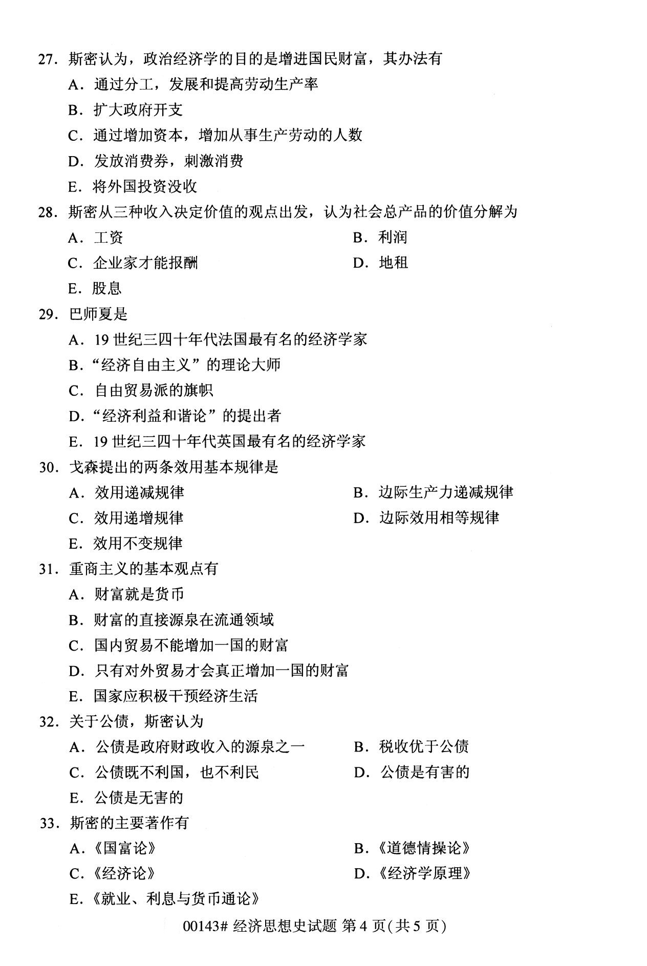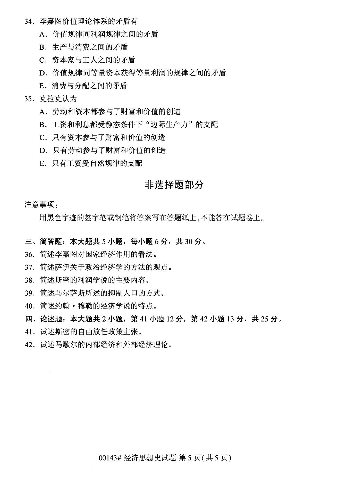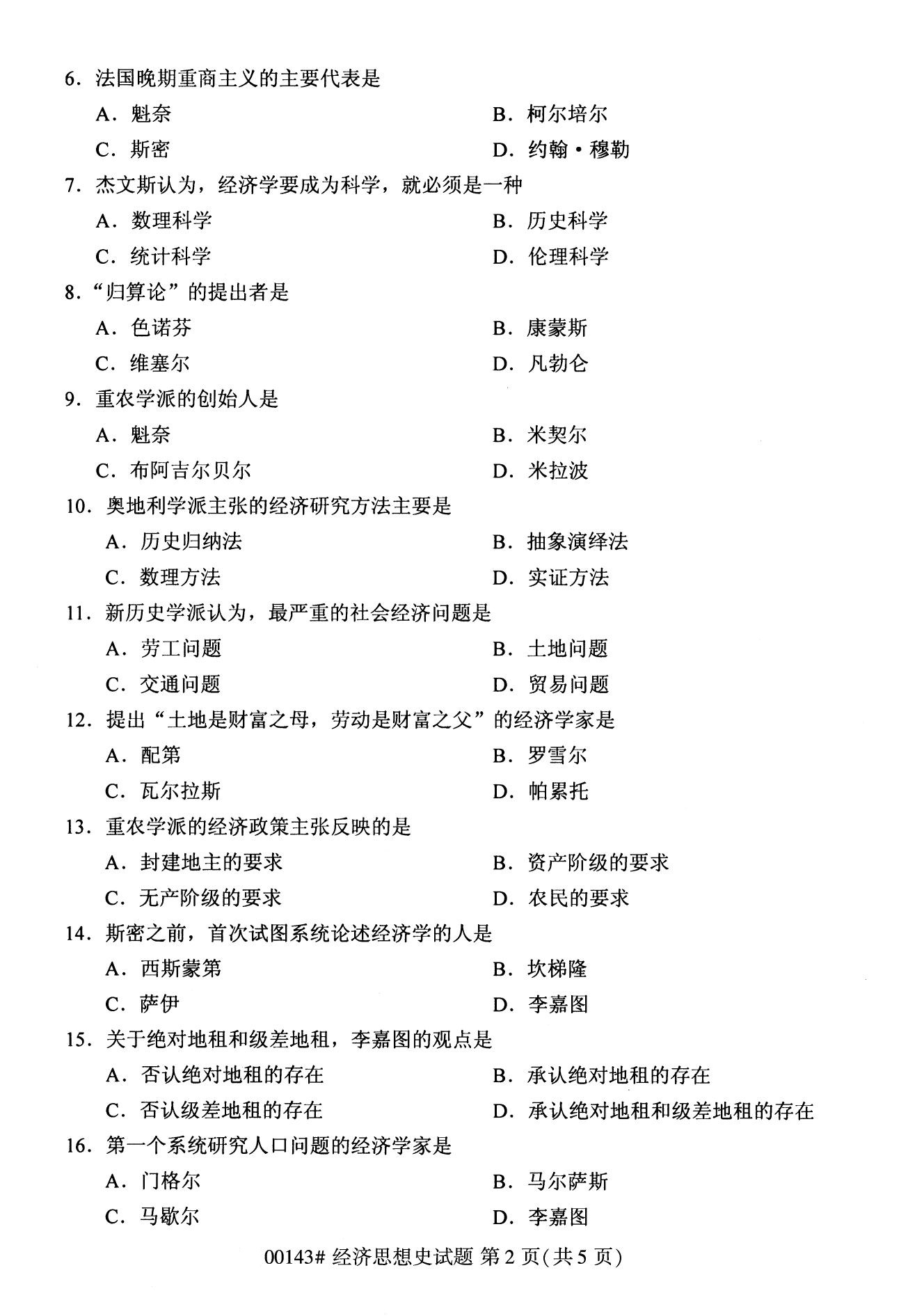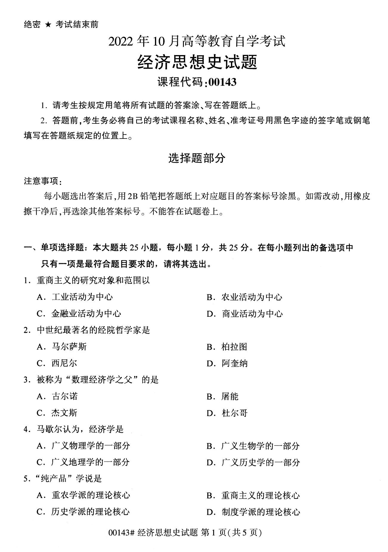 2022年10月高等教育自學考試經濟思想史00143試題
