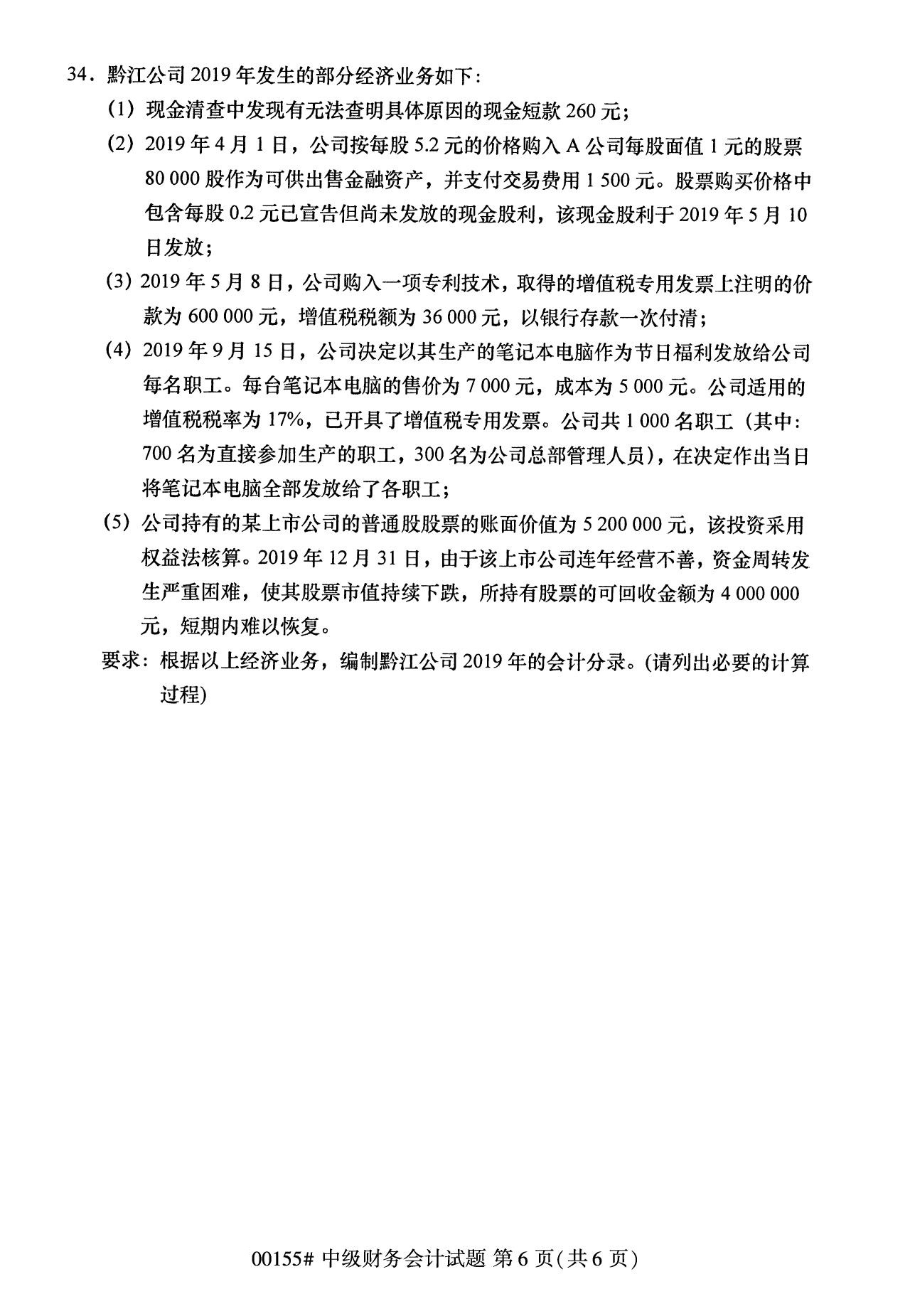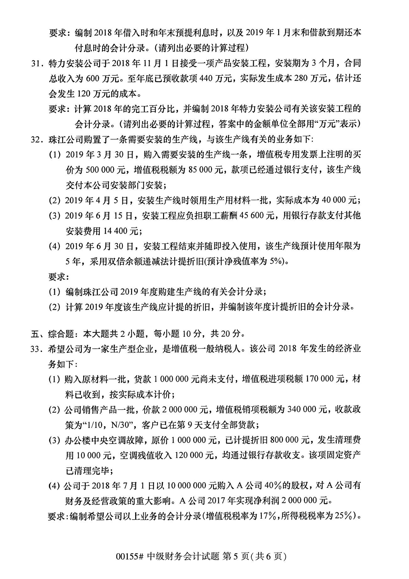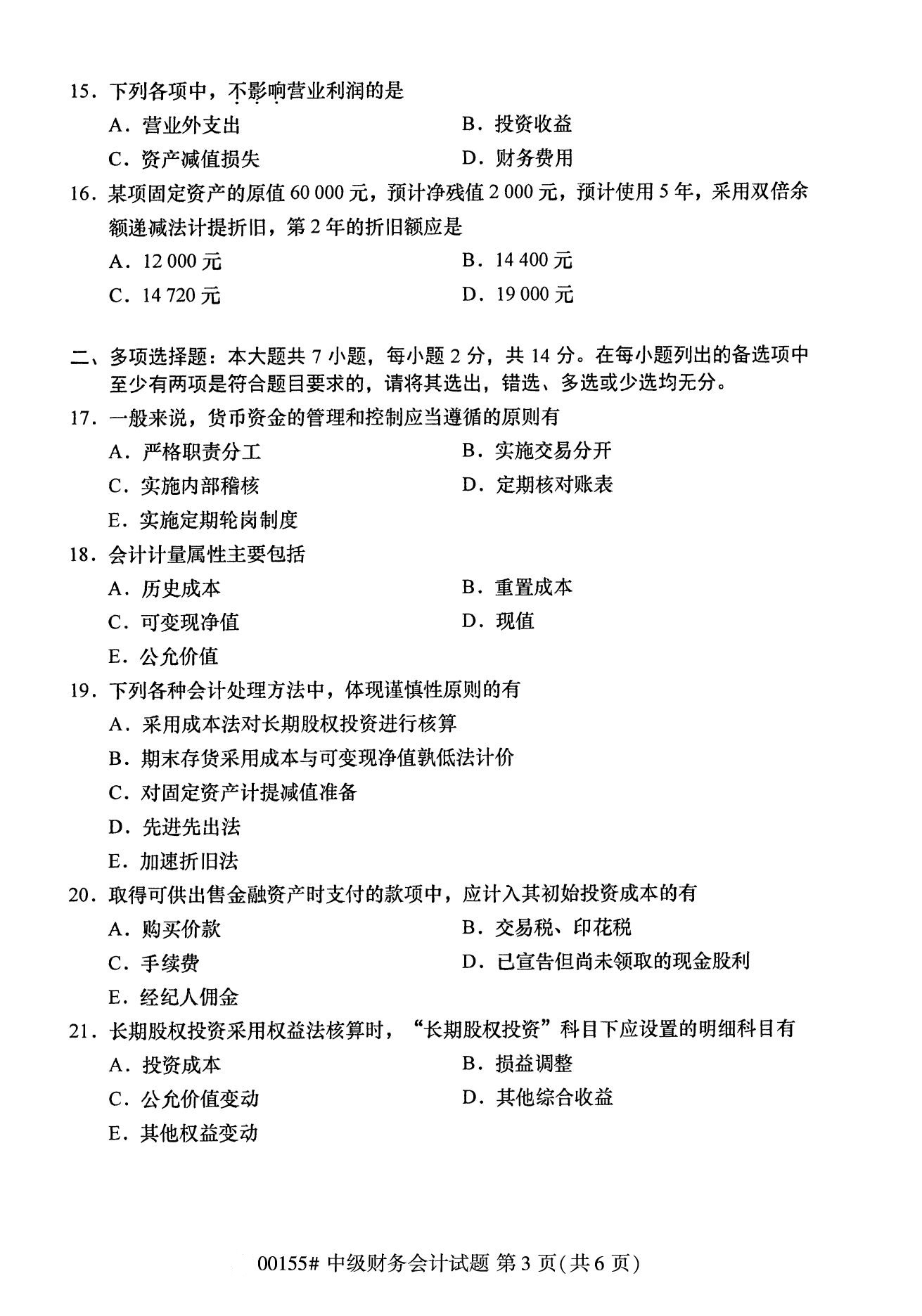 2022年10月高等教育自學(xué)考試中級(jí)財(cái)務(wù)會(huì)計(jì)00155試題