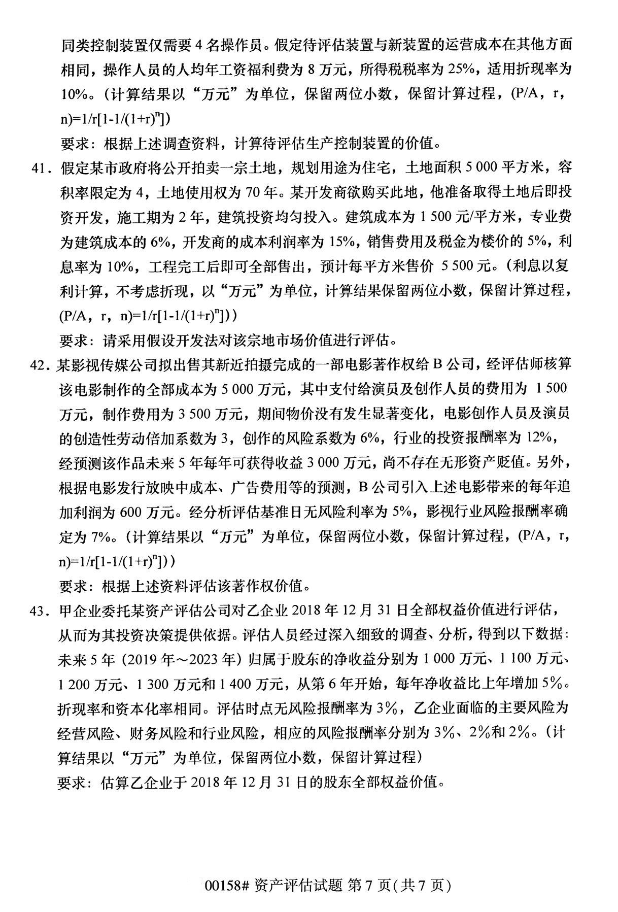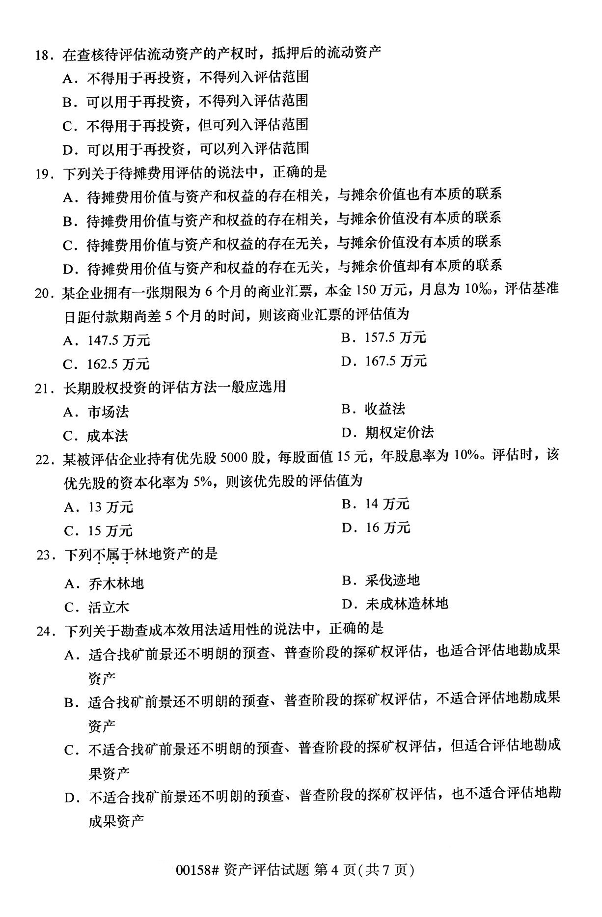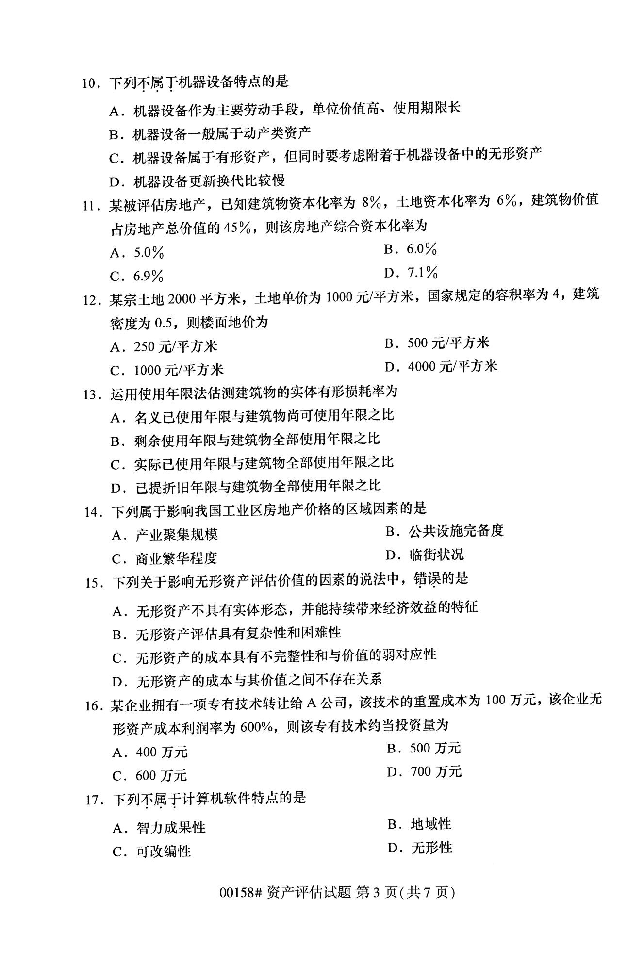 2022年10月高等教育自學考試資產評估00158試題