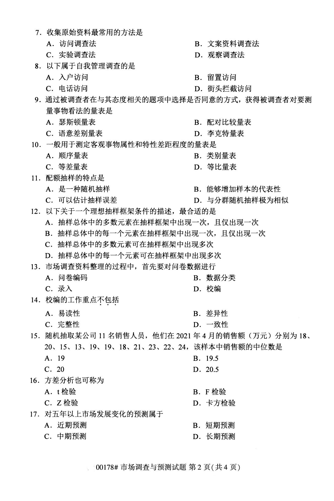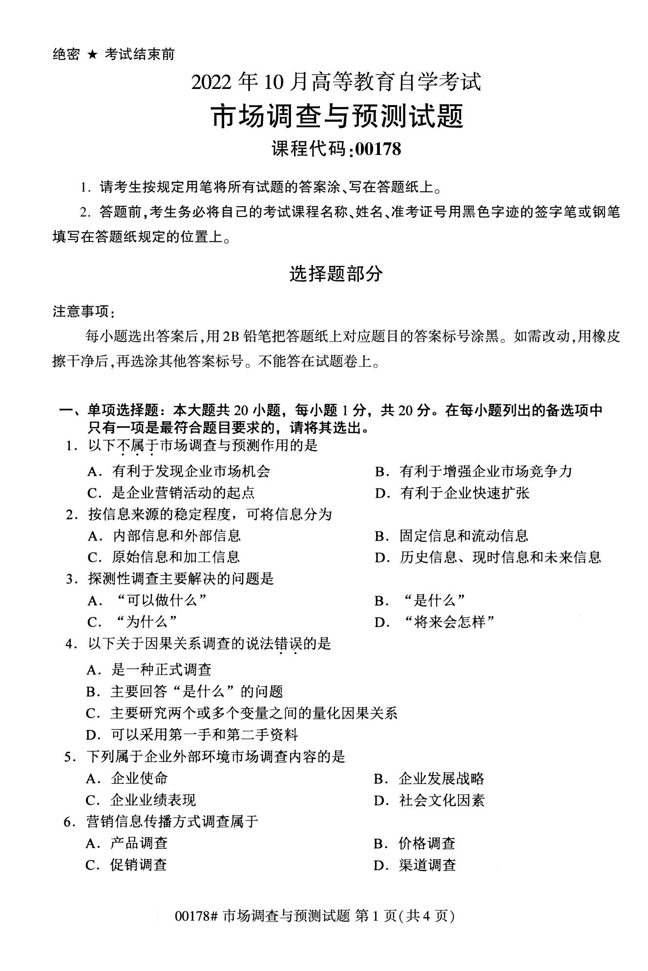 2022年10月高等教育自學(xué)考試市場調(diào)查與預(yù)測00178試題