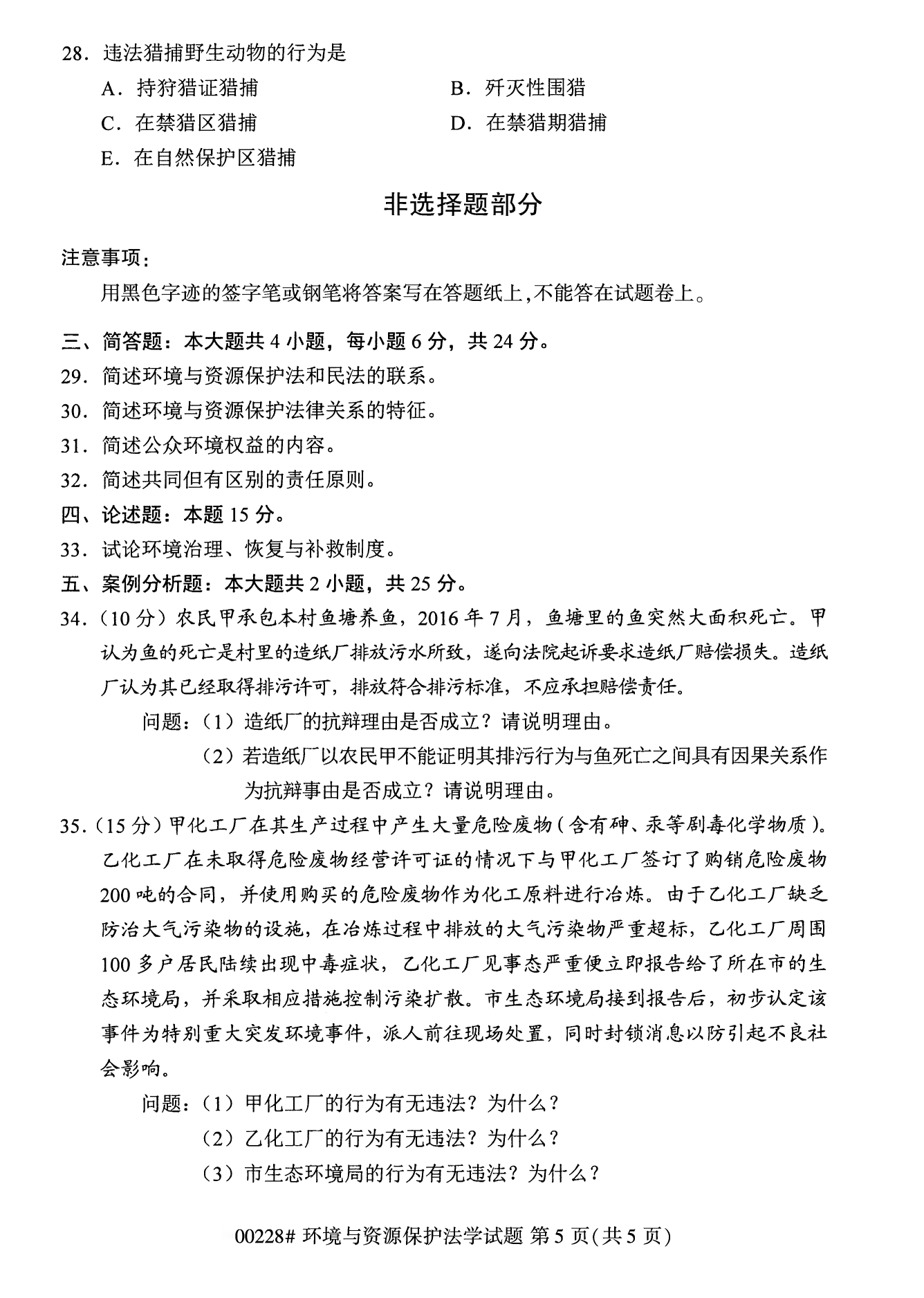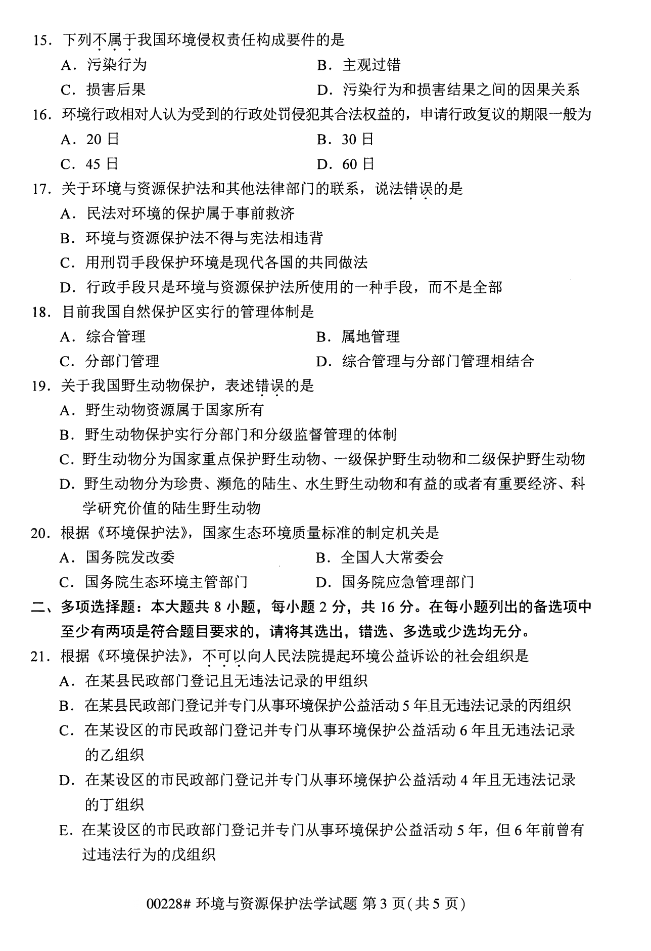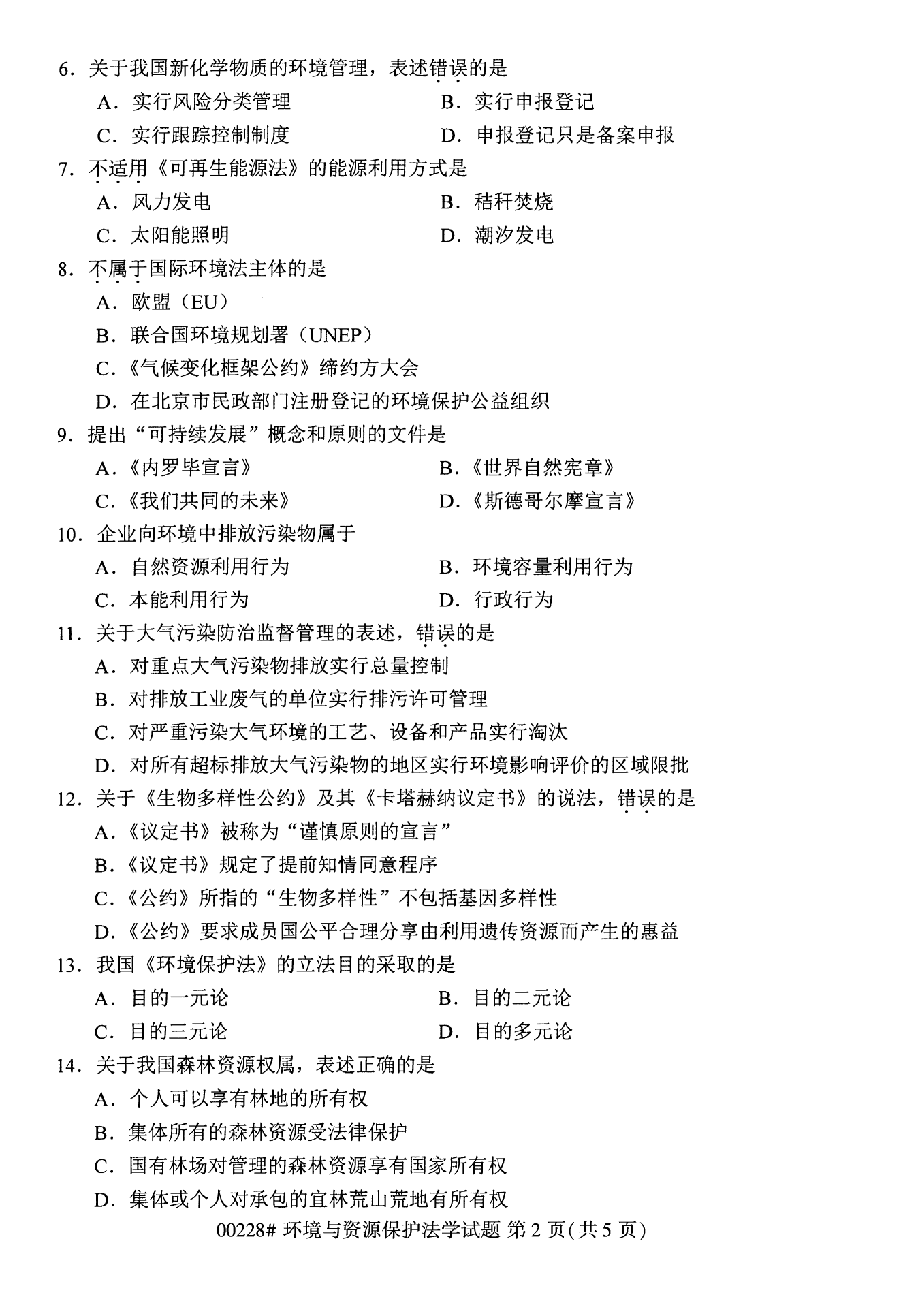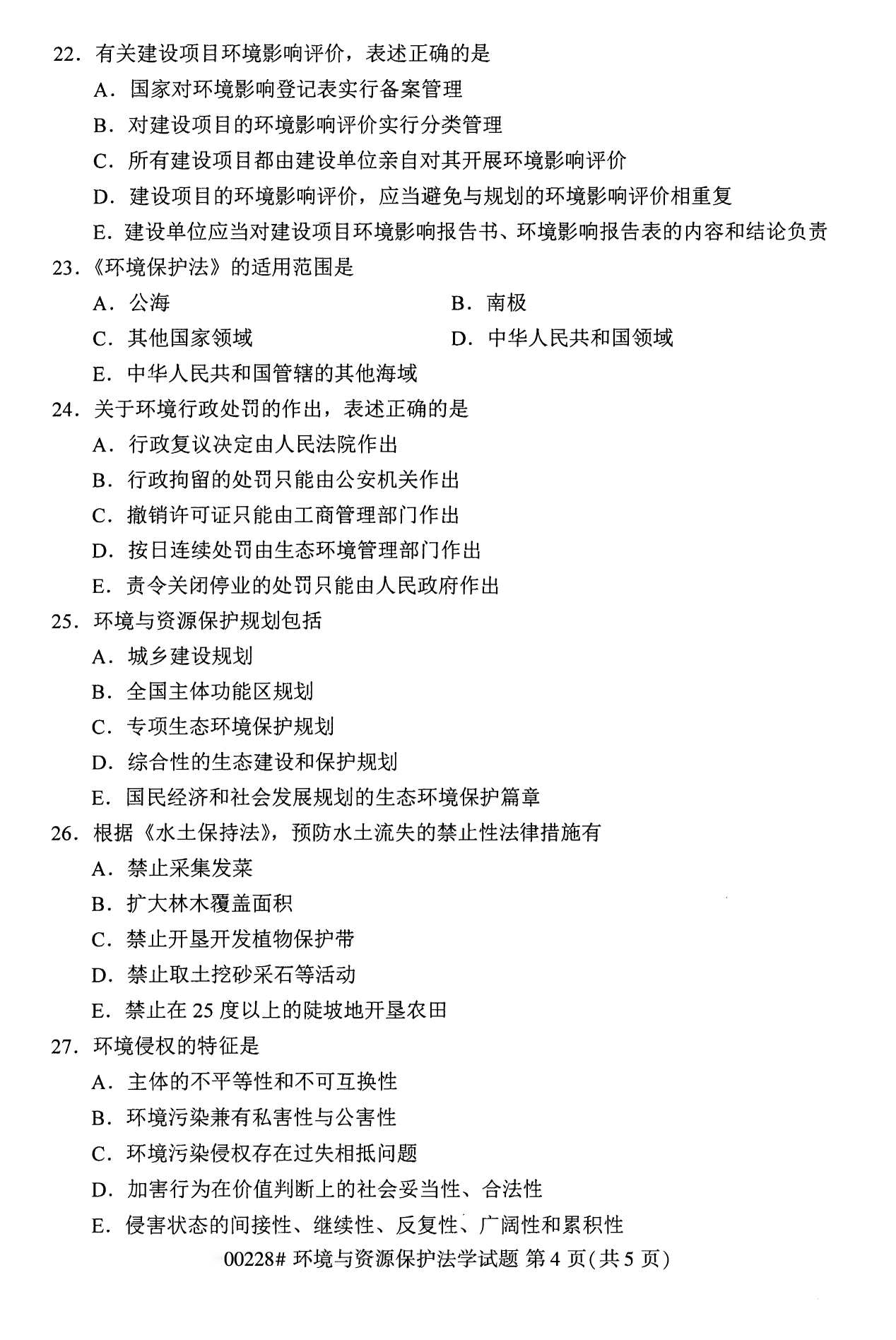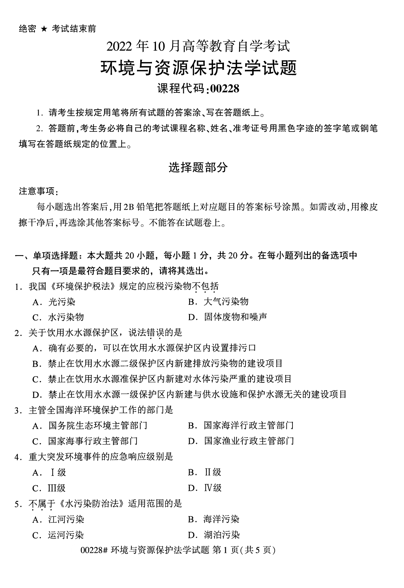 2022年10月高等教育自學考試環境與資源保護法學00228試題