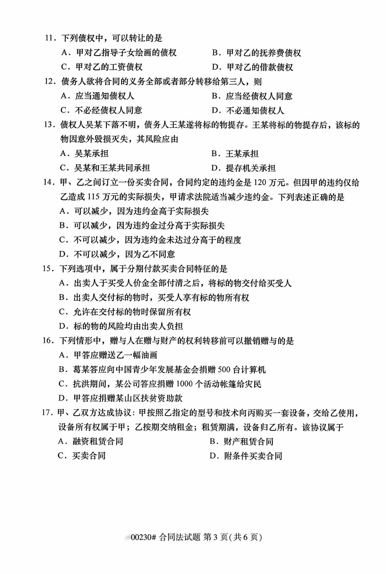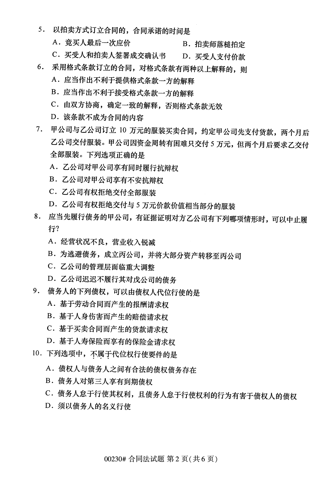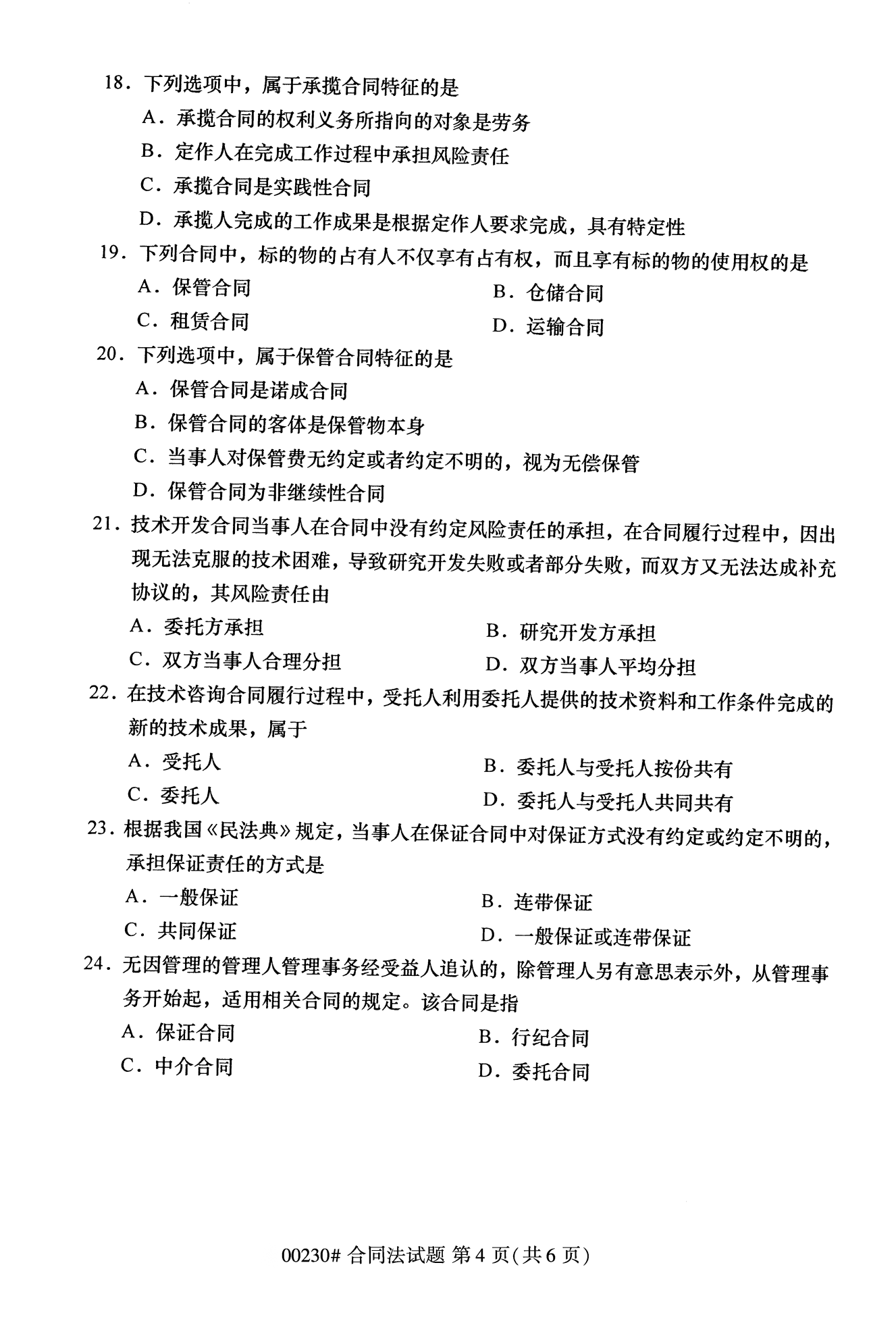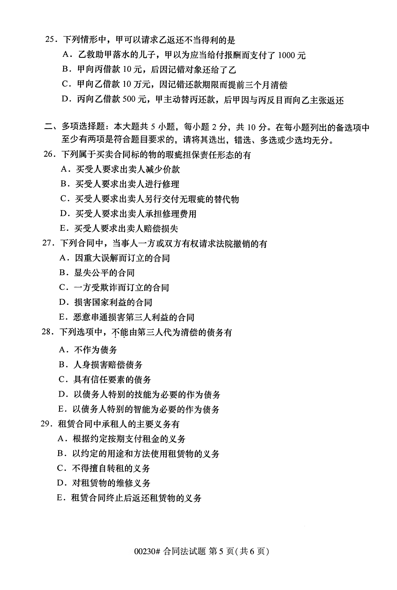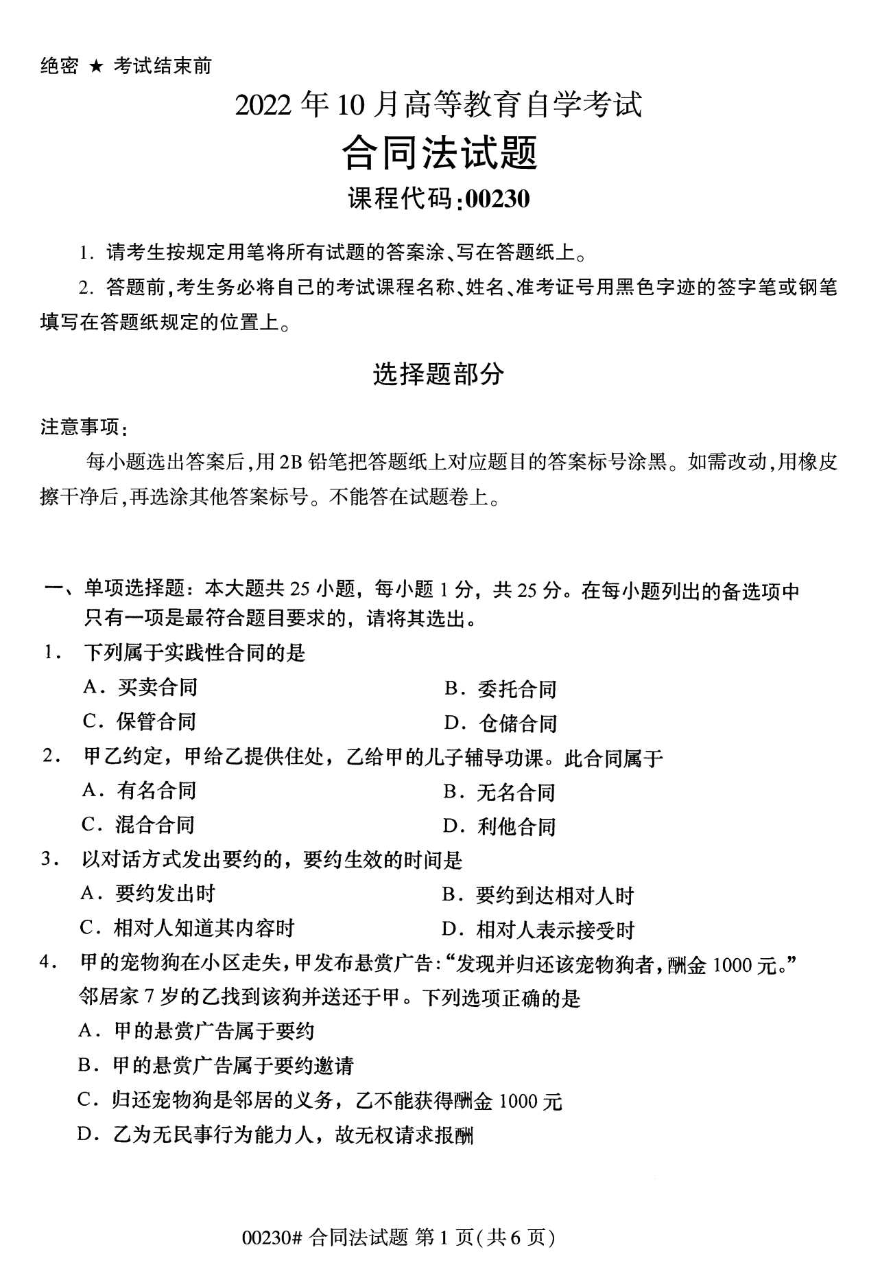 2022年10月高等教育自學考試合同法00230試題